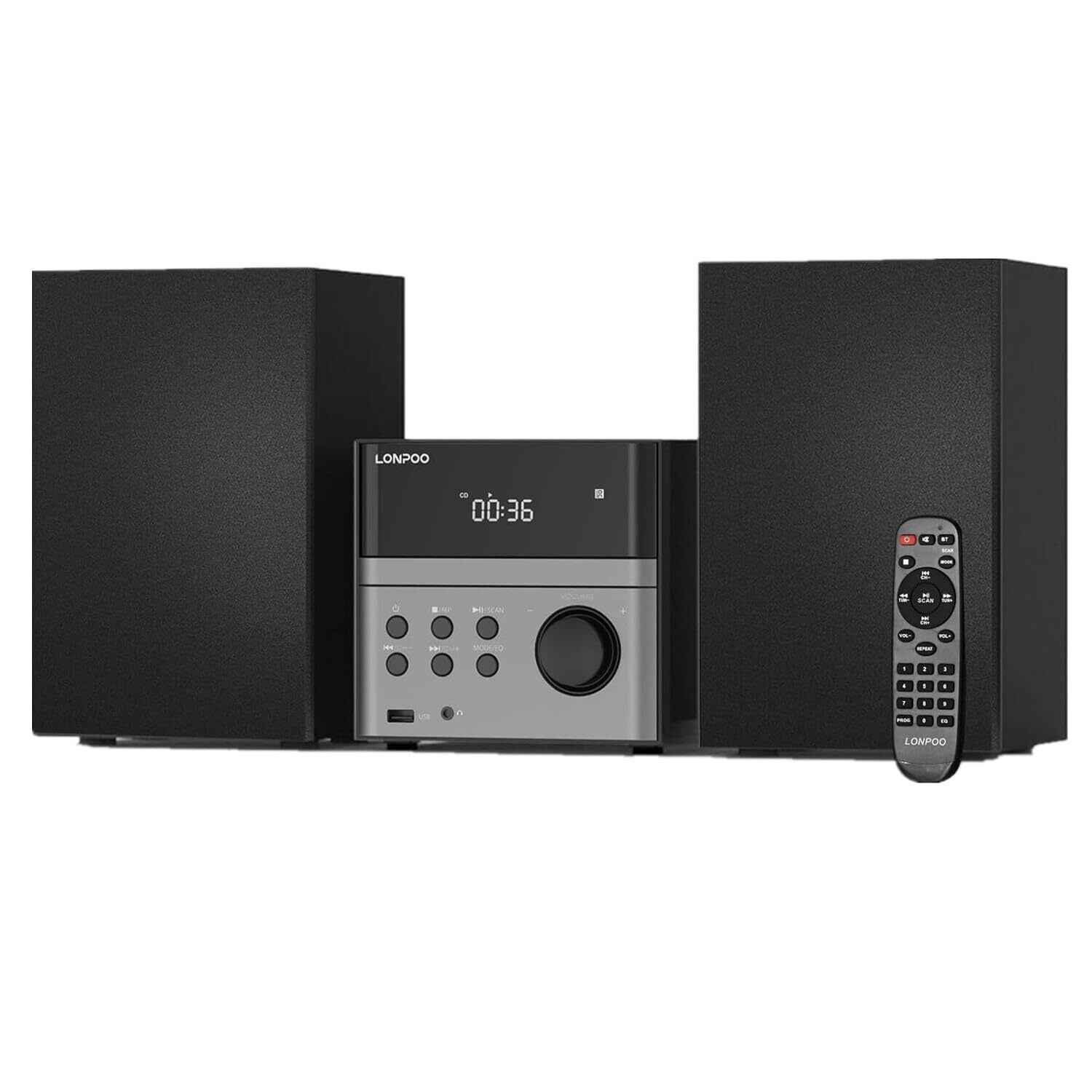 30W CDステレオシステムミニコンポ CDプレーヤー FMラジオ Bluetooth対応スピーカー USB/AUX入力 ヘッドフォンジャック リモコン