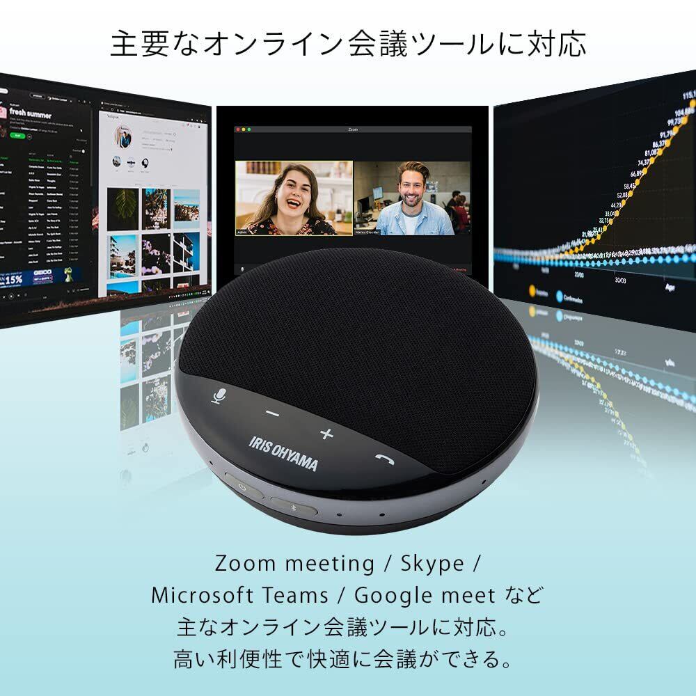 アイリスオーヤマ スピーカーフォン 会議用マイク Bluetooth対応 6時間連続使用 グループモード対応 USB-C接続 オンライン会議 テレワーク 在宅 会議システム ウェブ会議 テレビ会議 黒 CMS-101-B