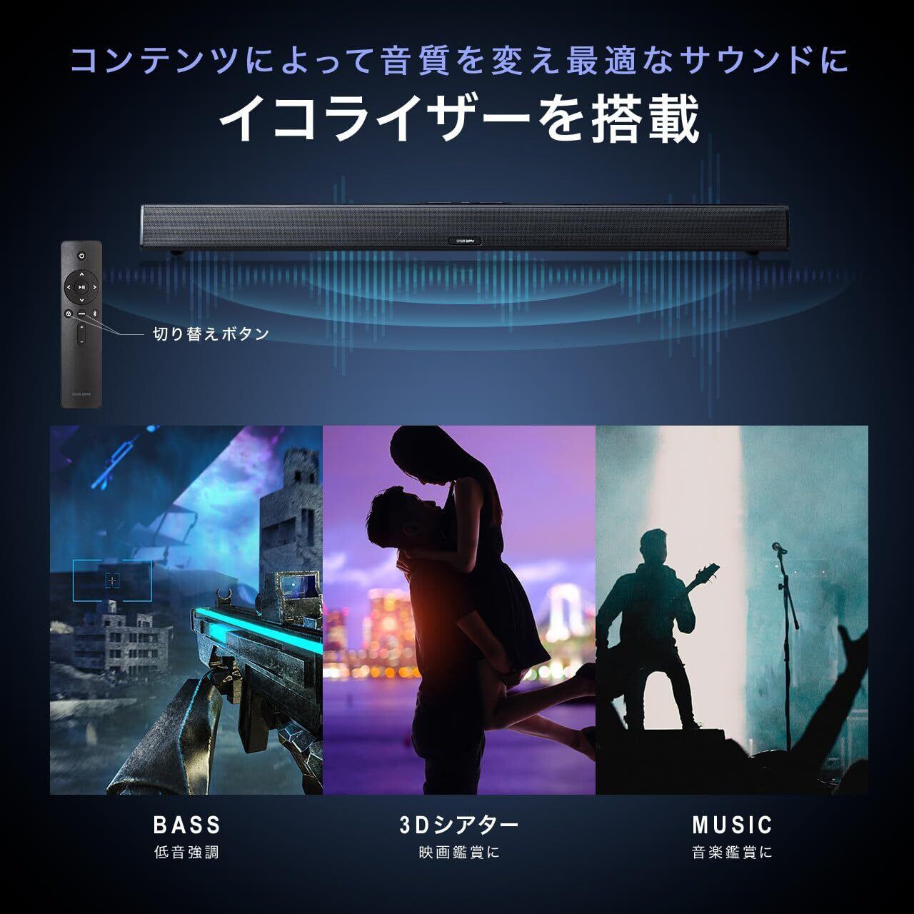 ジャンルに合わせて選べる3つのサウンドモードを搭載しています。(BASS/3Dシアター/MUSICモード)期間:ご購入日より6ヶ月