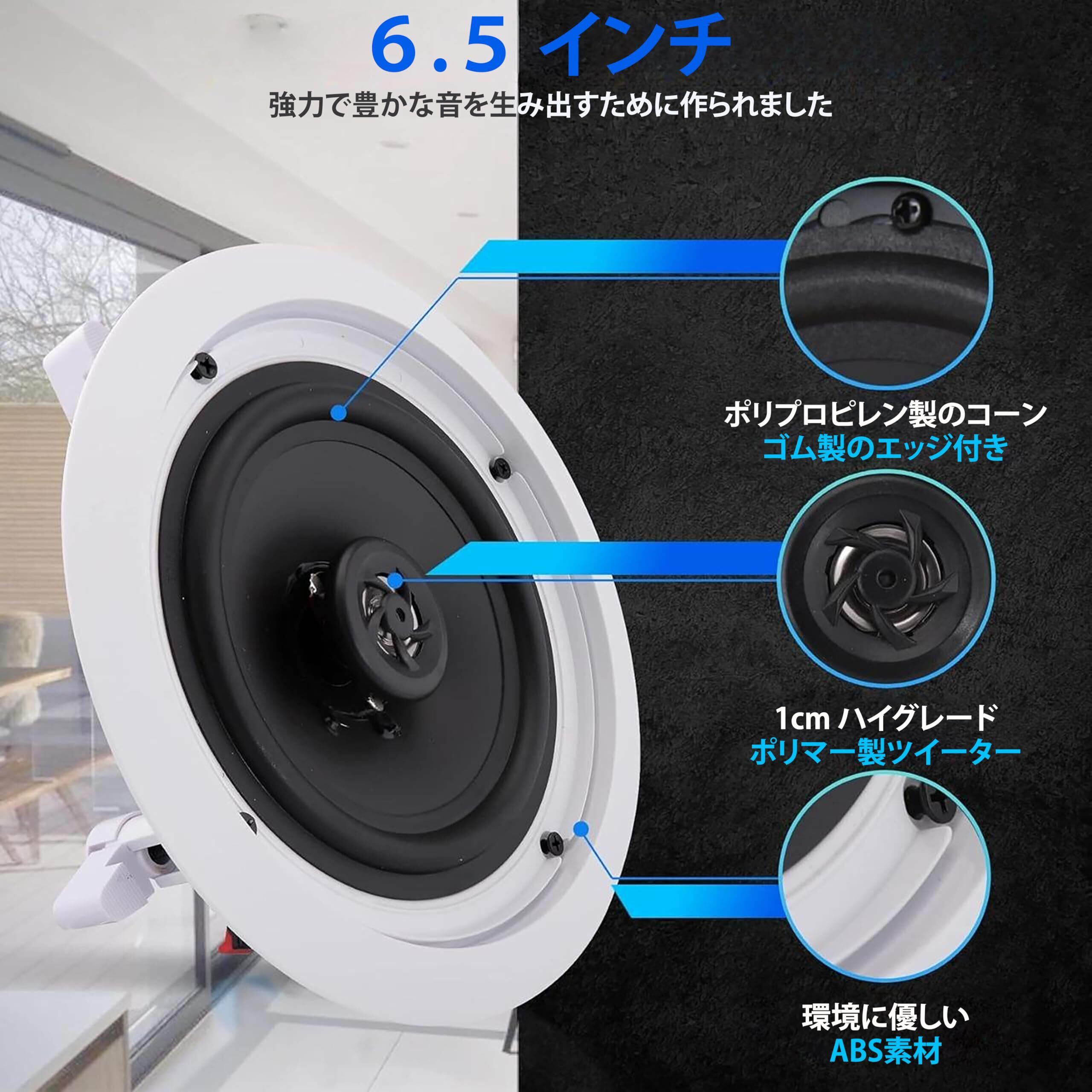 この6.5インチのフラッシュマウント2ウェイスピーカーシステムで、ホームオーディオ体験をアップグレードしましょう。生活空間にシームレスに統合できるよう完璧に設計されています。 このプレミアムインウォールスピーカーは、床置きや棚に取り付けられたユニットを散らかすことなく、豊かなステレオサウンドを提供します。モダンなホームシアターのセットアップに最適です。 壁や天井にぴったり合うように設計されたこのホームスピーカーには、汚れにくい丸いグリルが付いており、どんな装飾にも簡単に溶け込み、きれいで洗練された外観になります。 自宅、オフィス、スタジオで使用するかどうかにかかわらず、その汎用性の高いデザインは、プロにも個人的なオーディオインスタレーションにも適しています。 各スピーカーは、サスペンションクロス付きの高品質の6.5インチ強化ポリプロピレンコーンと、1/2インチの高コンプライアンスポリマーツイーターを備えています。 その結果、一貫した明瞭さとダイナミックなサラウンドサウンドパフォーマンスを備えたフルレンジのサウンド再生が実現します。 クイックコネクトスプリング式端子とカットアウトサイズテンプレートにより、素早く手間をかけずに設置できます。フラッシュマウントスピーカーデザインは、オーディオ品質を損なうことなくスタイルを追加します。 カスタムAVシステムを構築する場合でも、単に現在のセットアップを強化する場合でも、これらのウォールマウントスピーカーは、パフォーマンス、美観、利便性の優れたバランスを提供します。 印象的に作られた信頼性の高い目立たないウォールスピーカーで、リスニング体験を高めます。