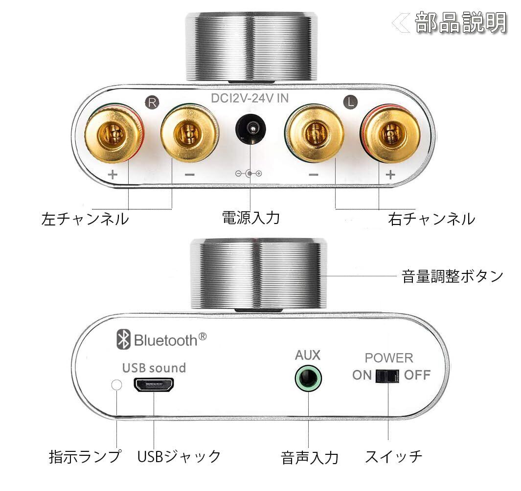 アンプ bluetooth パワーアンプ ステレオ オーディオアンプ ベース 増幅器 HI-FI 大出力 100W 高低音 超小型 超軽量 ミニ 多機種対応 電源アダプタ&日本語取扱説明書付