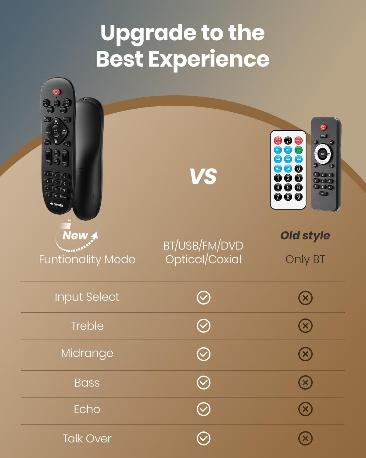 多機能リモコン:単一機能の制限なしに、当社のアンプホームオーディオは、任意の入力モードで高音/中音域/低音/エコー/トークオーバーの設定機能を使用することができますアップグレードリモコンが付属しています
