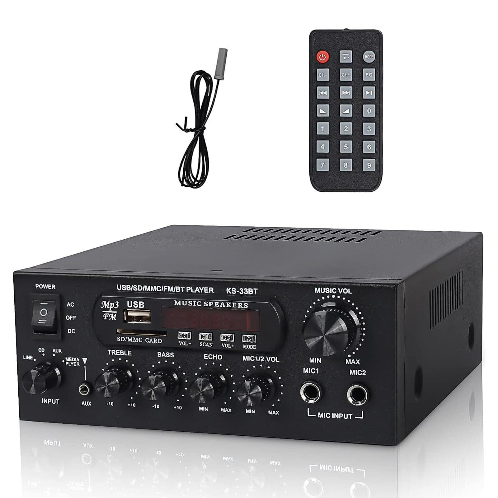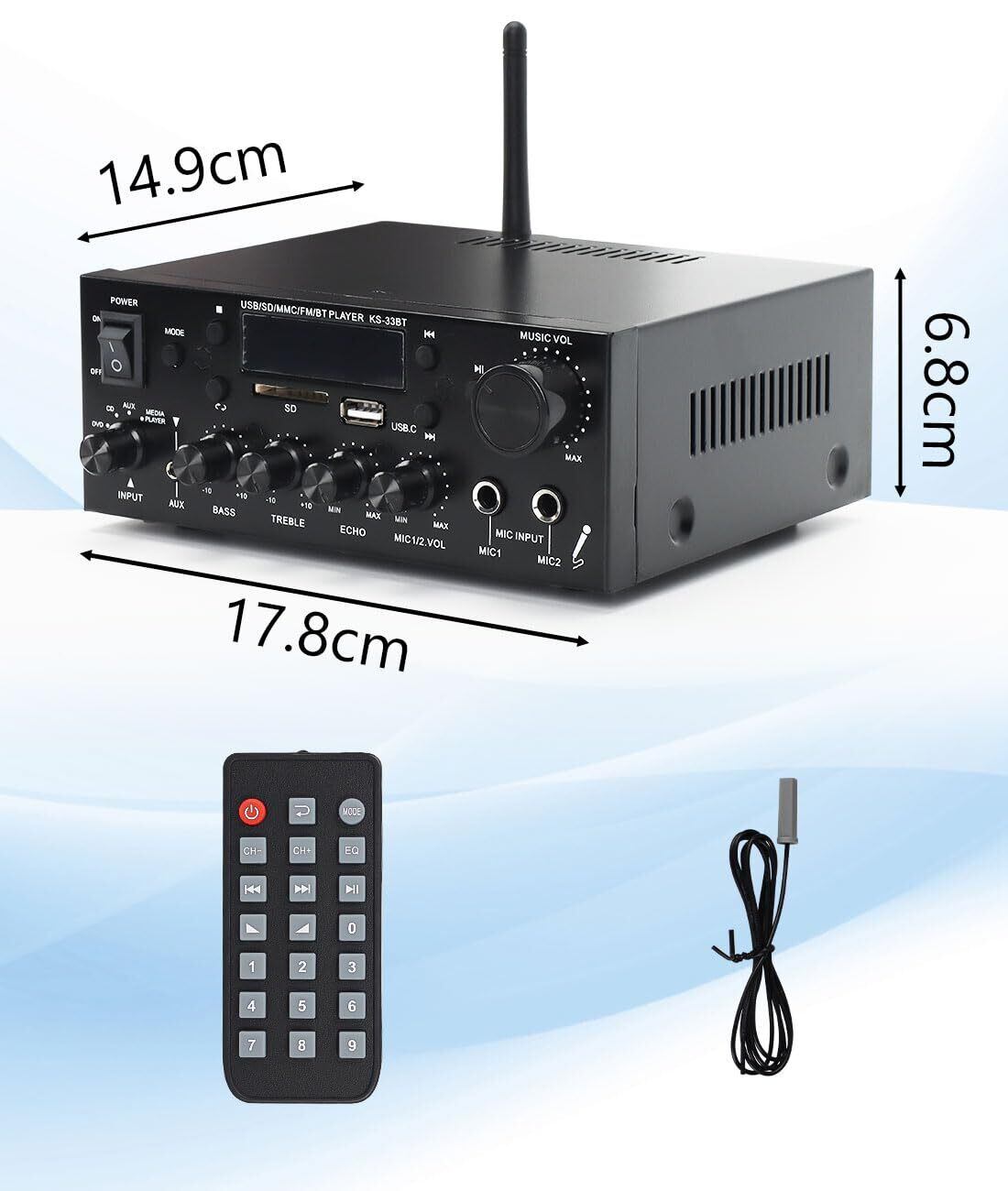 【様々な場合で大活躍】Bluetoothパワーアンプが複数の人が同時にカラオケもできるようにサポートします。ケーブルに接続して、家族や友達と一緒に歌を楽しみましょう。家でもカラオケの雰囲気が盛り上がっています。マイクの音量調整、スピーカーの音量調整はそれぞれに調整可能です。カラオケ、ボーカルコンサート、ライブパフォーマンス、会議、音楽とオペラ、教会、学校、結婚式、式典、パーティーなど、ほとんどすべての活動が最高です。使用中、製品の使用について何か不明なところが御座いましたら、ご心配なさらないで注文履歴より弊店までご連絡ください。
