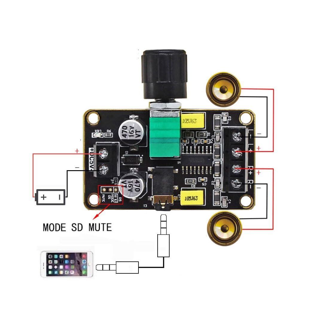 オーディオ アンプ ボード : デジタル アンプ ボード の動く電圧はDC 5V(過圧しないで、過圧はICを焼きます)、出力電力は5W (2Ω 5V)/3W (4Ω 5V) / 1.8W (8Ω 5V);2.0デュアルチャンネル クラス D DC 5V アンプリファイ