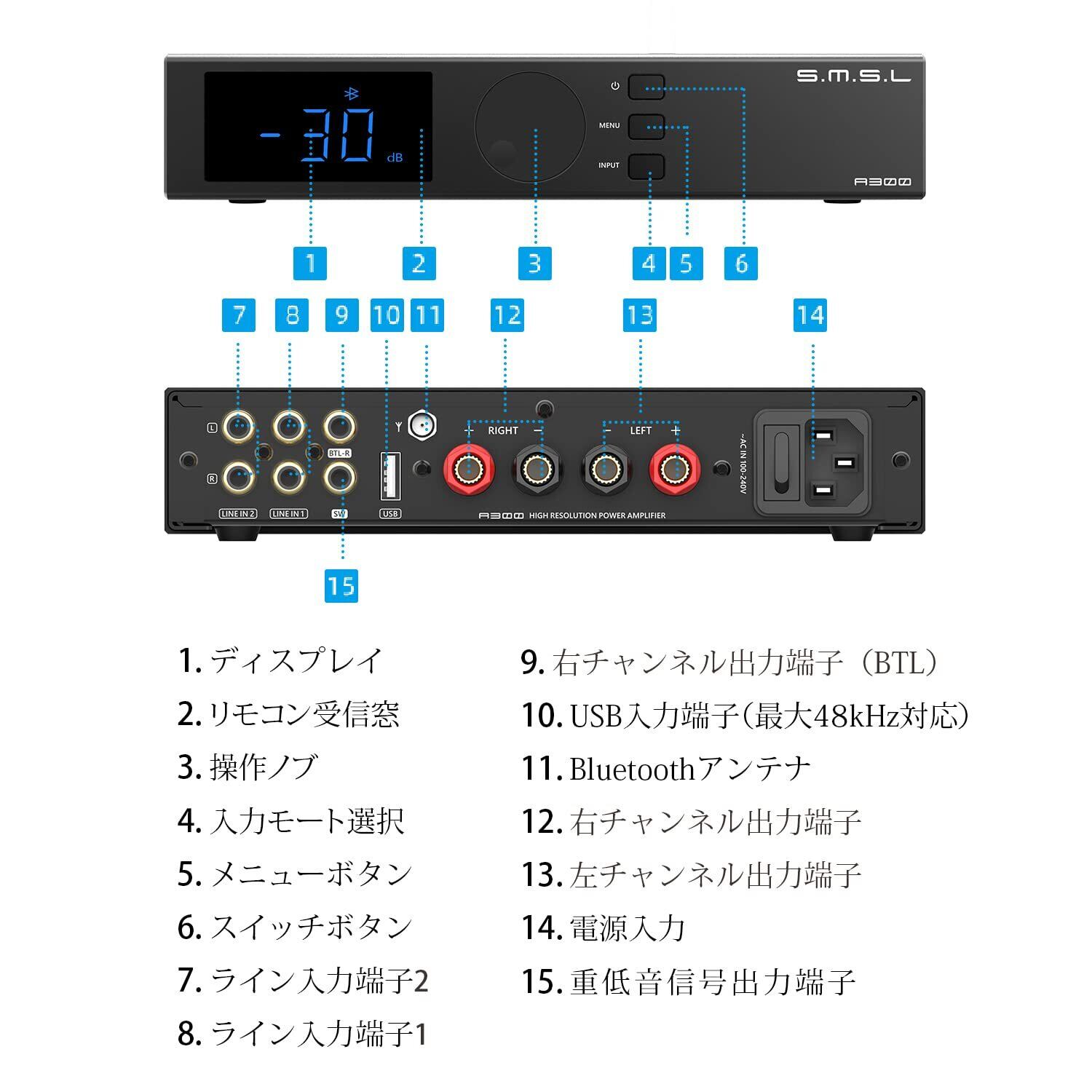 S.M.S.L A300 アンプ Bluetooth パワーアンプ ステレオ/モノラル HI-FI スピーカー用 2.1ch 2.0ch 1ch BTL 330WクラスD オーディオ デジタルアンプ