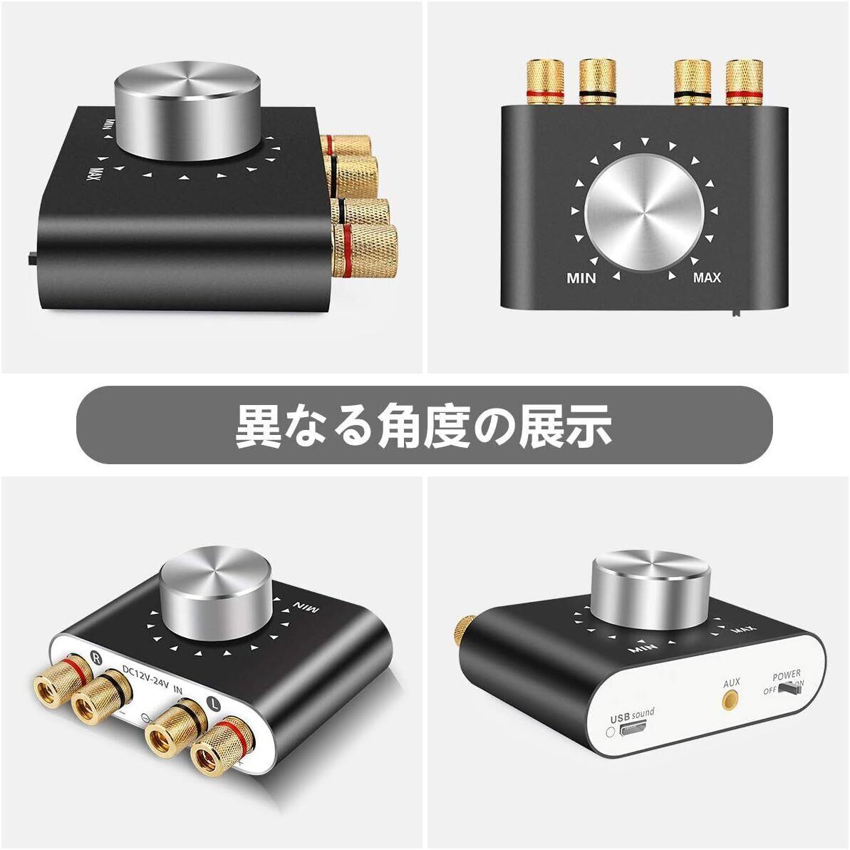 【コンパクトで持ち運び便利】サイズ:横 7.8cm× 幅 7cm× 高さ 3.7cm、重量 92g のコンパクトデザインで、持ち運びが極めて簡単です。パッケージ内容:パワーアンプ ×1、3.5mm AUX オーディオケーブル ×1、AV オーディオケーブル ×1、電源 AC アダプタ ×1、USB ケーブル ×1、日本語説明書 ×1