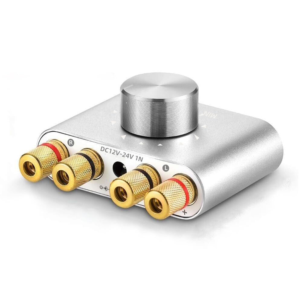 アップグレード版 Bluetooth 5.0 アンプ ROTKUEIEE ステレオ スピーカー パワーアンプ デジタルアンプ ベース 増幅器 HI-FI 音質 100W 大出力 超小型 電源付き (シルバー)