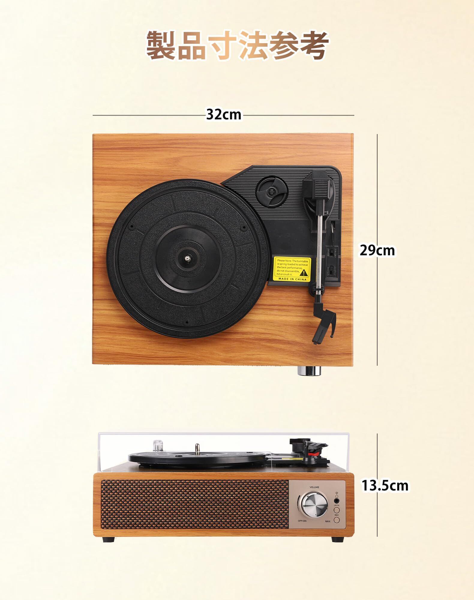 【回転速度選べ&3つサイズ対応】音楽のジャンルやお好みに応じて、ターンテーブルの再生速度(33-1/3、45、78)を選べます。7インチ、10インチや12インチのほとんどのレコードを対応します。自動停止スイッチにより、再生が完了した時点で自動的に停止します、レコードを保護します。