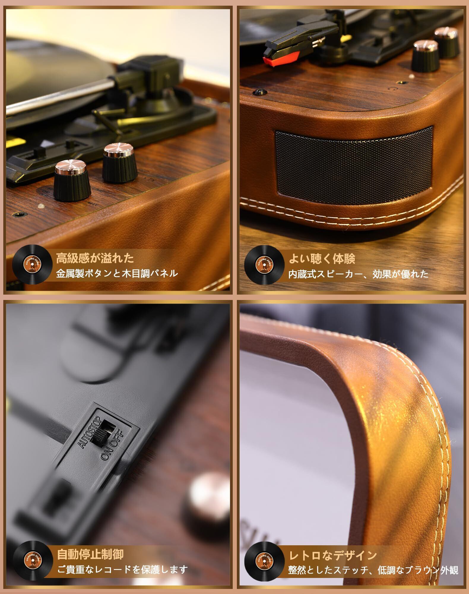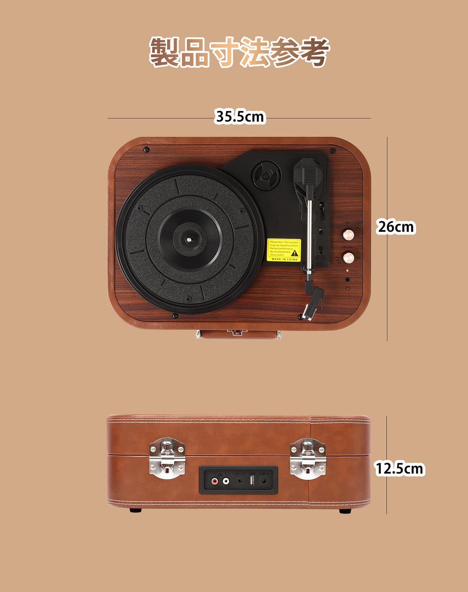 VOKSUN レコードプレーヤー Bluetooth送信と受信 USB録音可能 外部スピーカーに繋ぎ 33/45/78回転と7/10/12インチレコード対応 スピーカー内蔵 レトロ 日本語説明書 ブラウン 2年 S300