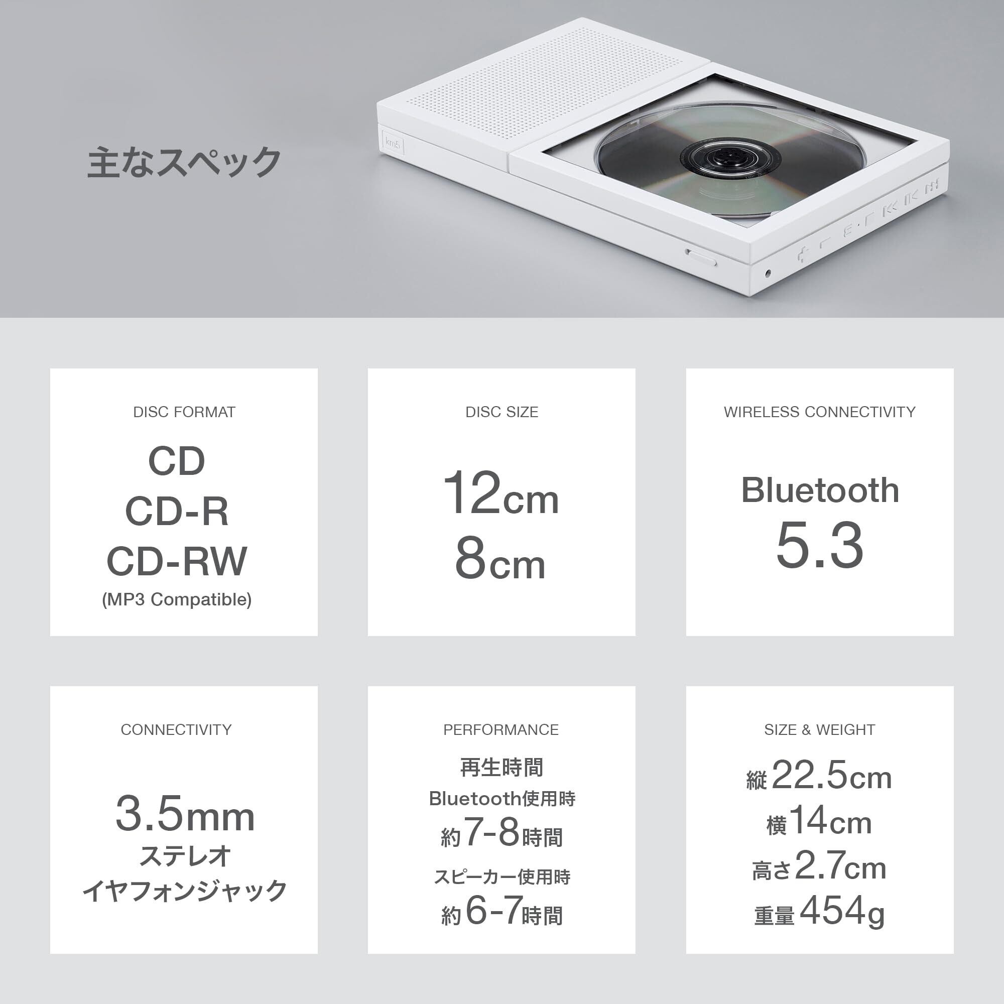 CDプレーヤー ポータブル/壁掛け Bluetooth 軽量 薄型 壁掛けcdプレイヤー player (ホワイト