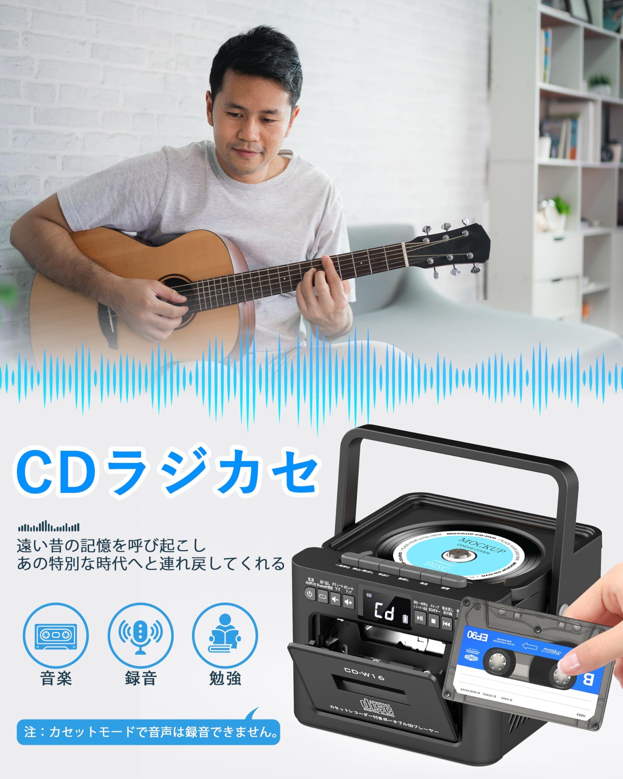 【多機能ポータブルCDプレーヤー】GreadioポータブルラジカセCDプレーヤーは、CD、ラジオ、カセット、Bluetooth 5.1、USB、AUX、TF/SDカードなど様々な再生オプションを提供します。この多機能ラジオCDプレーヤーは、LEDディスプレーとリモコンを備えており、簡単にナビゲーションと操作ができます。曲の切り替え、音量の調整、再生モードの選択が簡単に行えます。この高音質cdラジカセで、お気に入りの音楽を複数のモードで楽しむことができます。