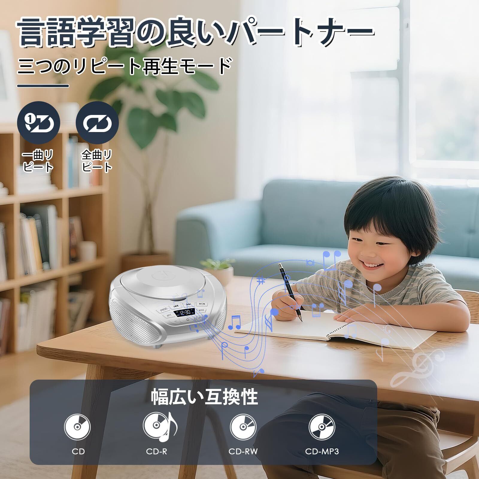 【お子様からお年寄りまで安心!シンプル操作ですぐ使える】迷わず使える大きな物理ボタンと分かりやすい日本語表示で、簡単操作を実現したCDプレーヤーです。機械が苦手な方やご年配の方、お子様でもすぐにCD再生やFMラジオの選局が可能です。リモコンなしでも主要な操作は全て本体で完結。届いたその日から、お気に入りの音楽や語学教材を手軽に楽しめます。