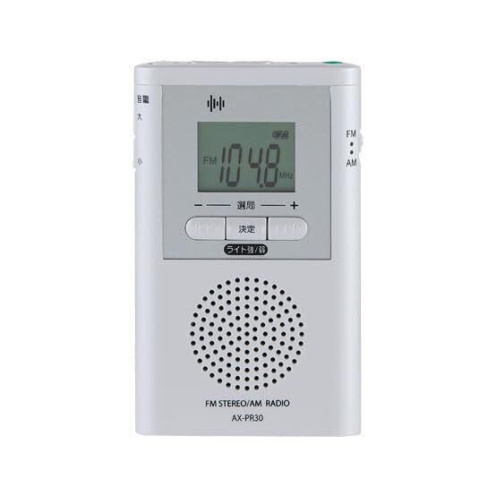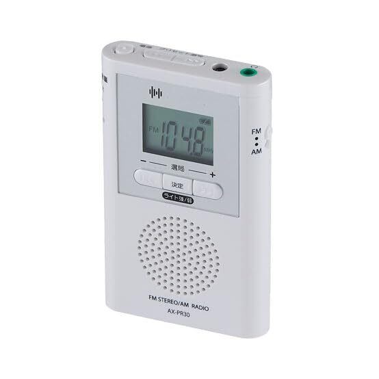ポケットラジオ ワイドFM/AM対応 デカ文字液晶 デジタルチューナー 長時間LEDライト付 AX-PR30(W) ホワイト 1台[ボタン電池 LR41H 1個付き]