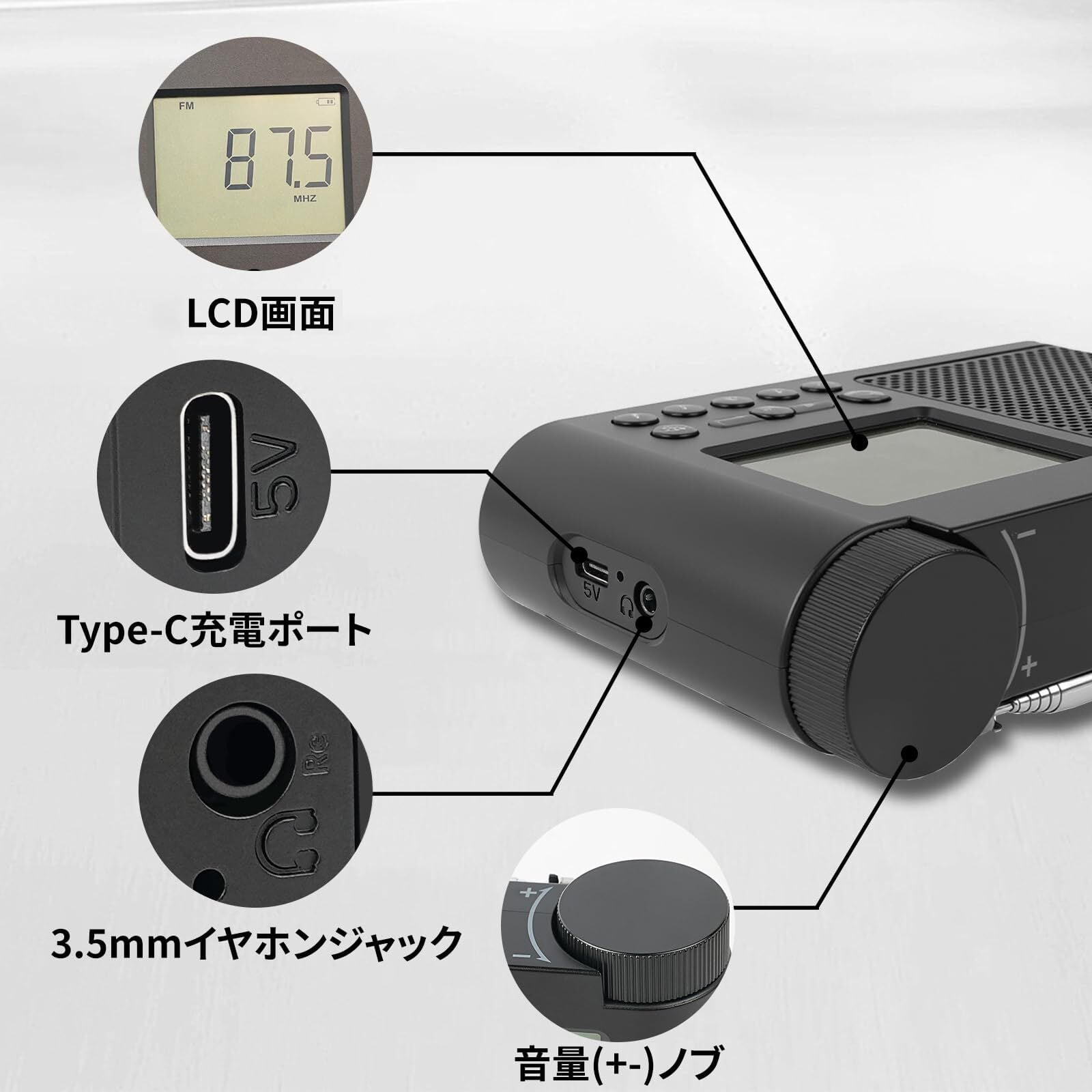 【多機能】お気に入りのラジオ局を、内蔵スピーカーから直接聴いたり、3.5mmヘッドホンジャックからヘッドホンで聴いたりできます。時計機能も搭載。バックライト付きLCD画面は夜間の使用に最適です。