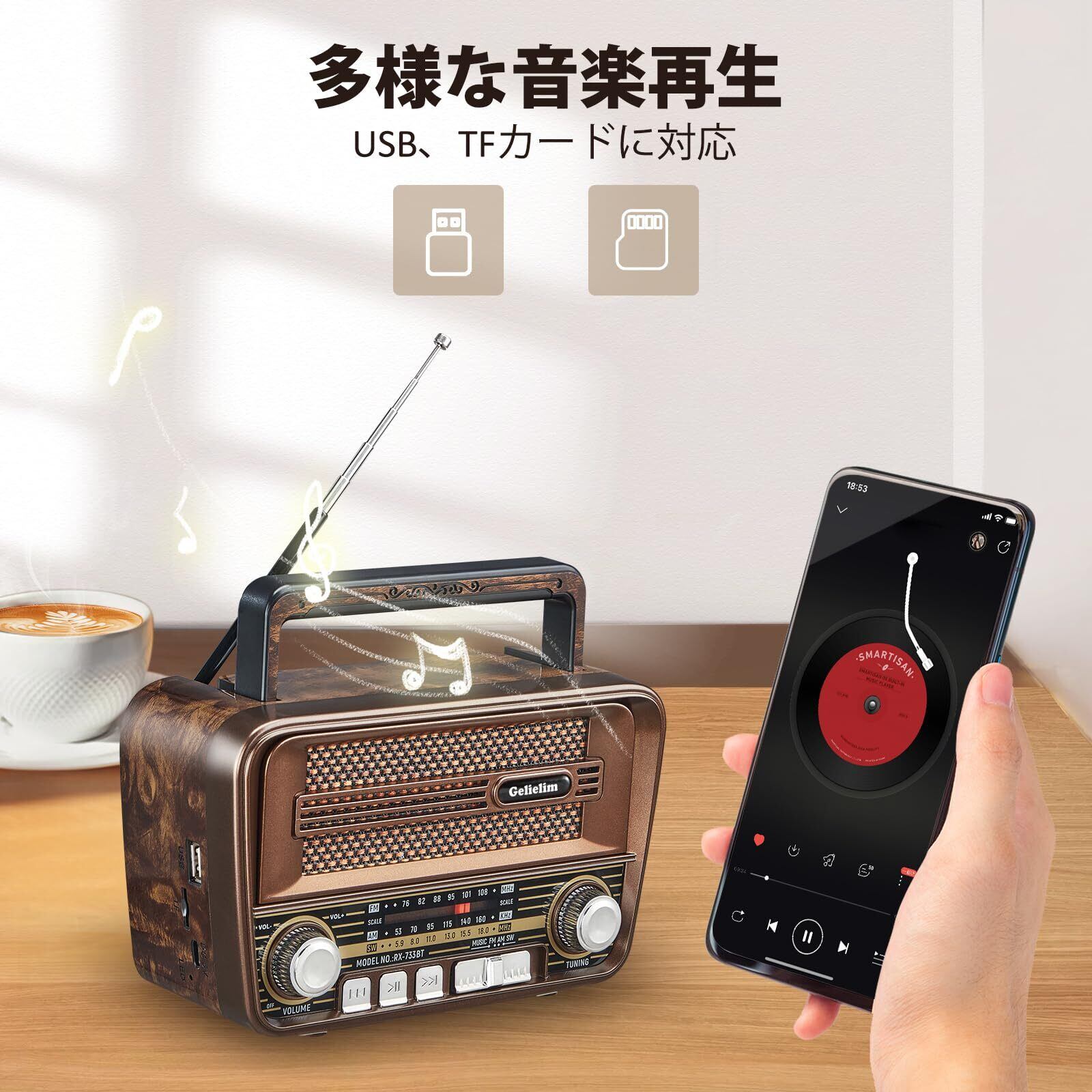 Gelielim ラジオ ポータブルラジオ FM/AM/SW/短波ラジオ 小型 USB/SDカード対応 電池/USB充電 MP3プレーヤー大音量 屋内および屋外使用 レトロラジオ 日本語取扱説明書