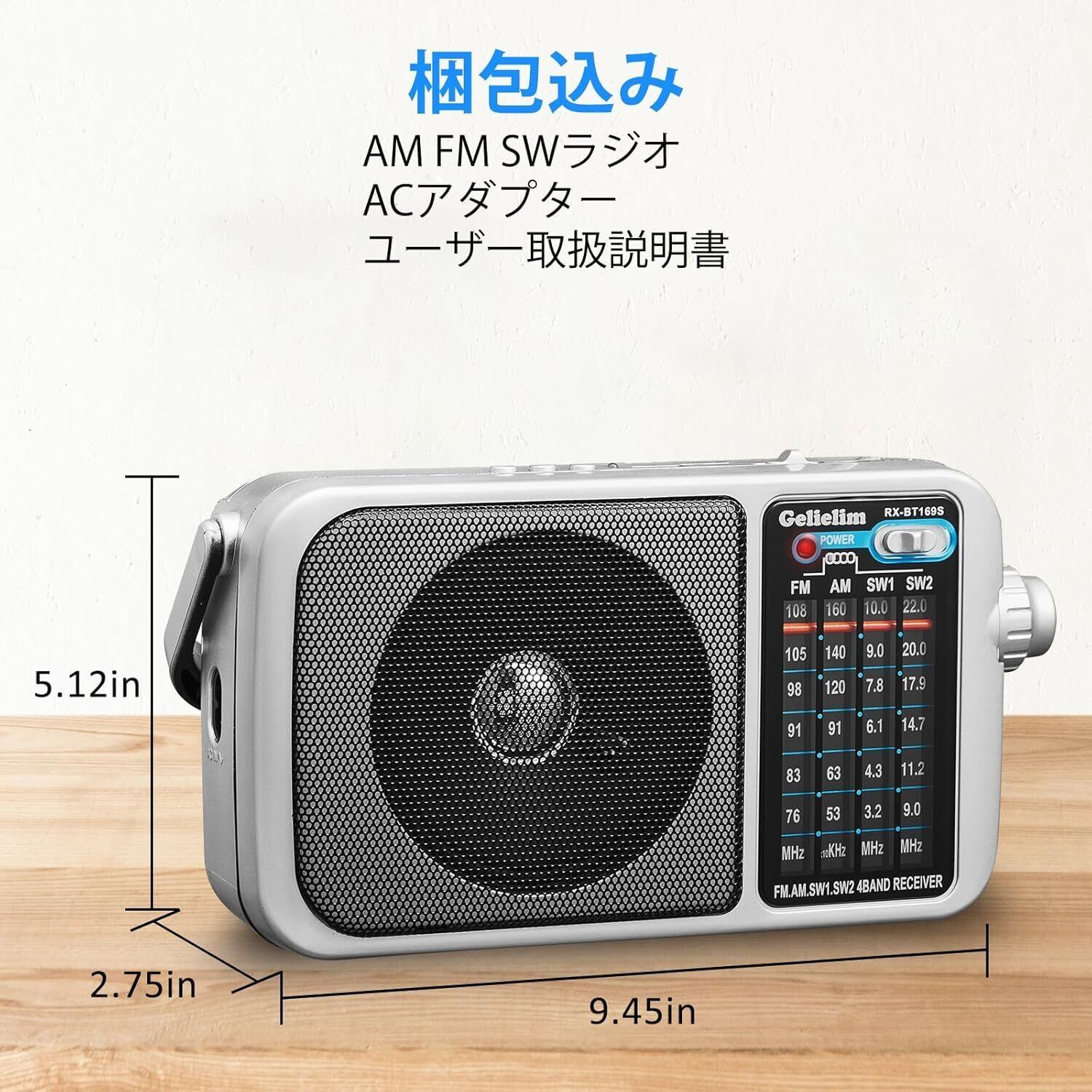 Gelielim ポータブルラジオ FM/AM/SW1-2/ ワイドFM対応 高感度 低音強調 大きめ選局表示 USB/SD/TFカード対応 MP3プレーヤー ラジオ イヤホン端子付き 乾電池式 AC電源式