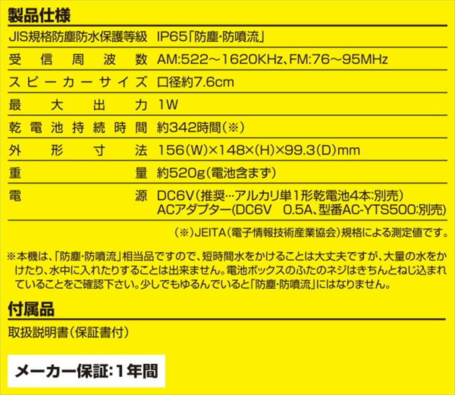 農作業・工事現場にピッタリな水・砂ぼこりに強い防水ラジオです。