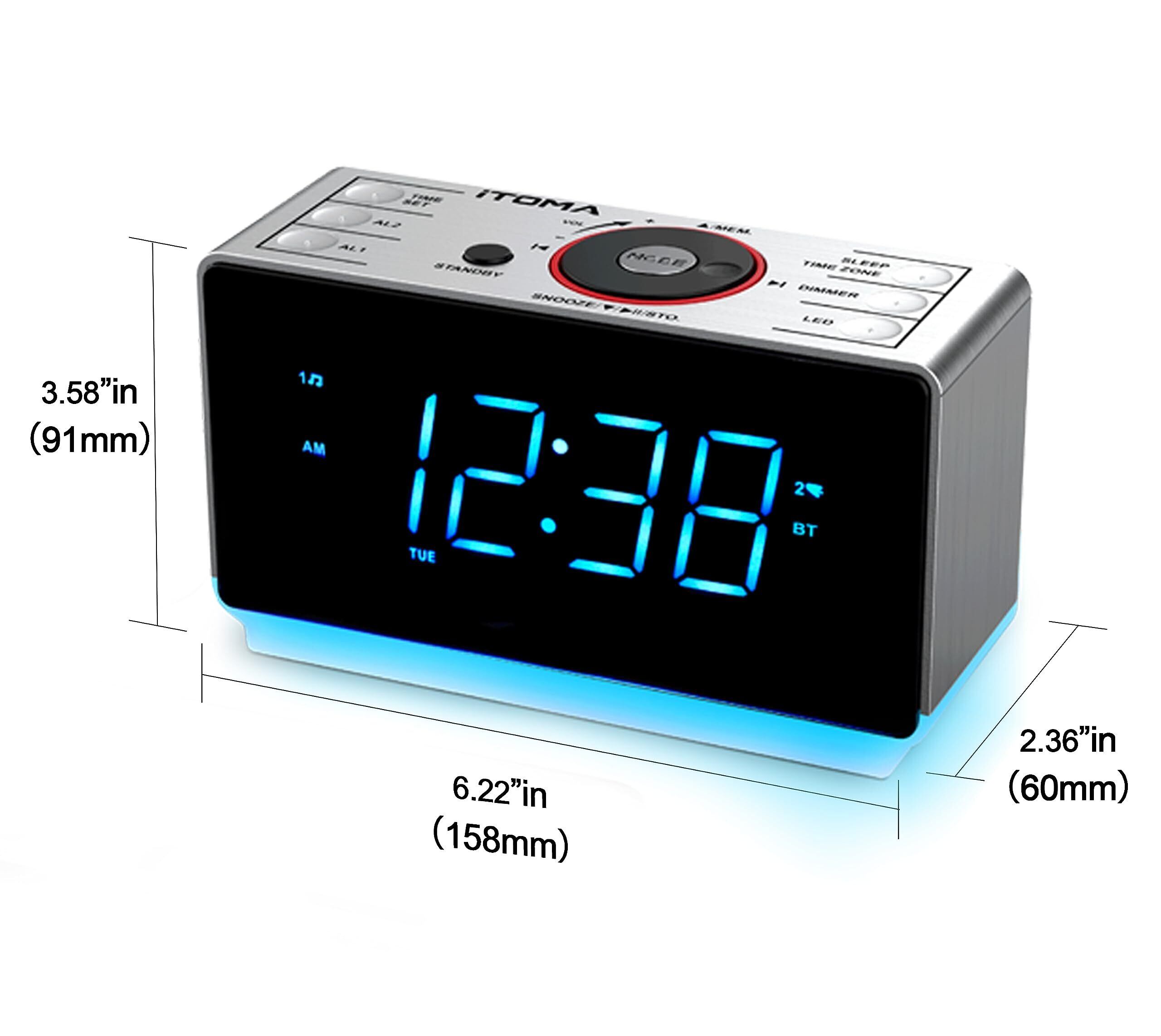 Bluetoothスピーカー付きアラームラジオ、周波数変調ラジオ、Snooze付きダブルアラーム、大型LEDディスプレイ、調光器制御、USB充電出力、ナイトライトiTOMA CKS 708