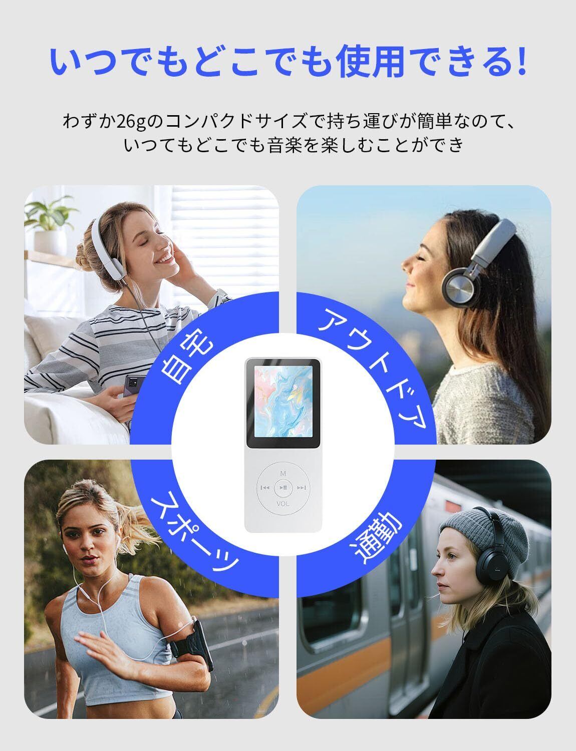 【操作簡単&超軽量】本MP3 プレーヤーはボタンに触れるだけで簡単に操作でき、お年寄りやお子様にも適しています。当社の音楽プレーヤーは、手のひらサイズと約26gの超軽量のため、ポケットやリュックサックに簡単に入ることができ、携帯に便利です。コンパクトなボディは、通勤・通学時の電車内や、ジムでのトレーニング中、旅行や出張先など、さまざまなシーンで快適にお使いいただけます。