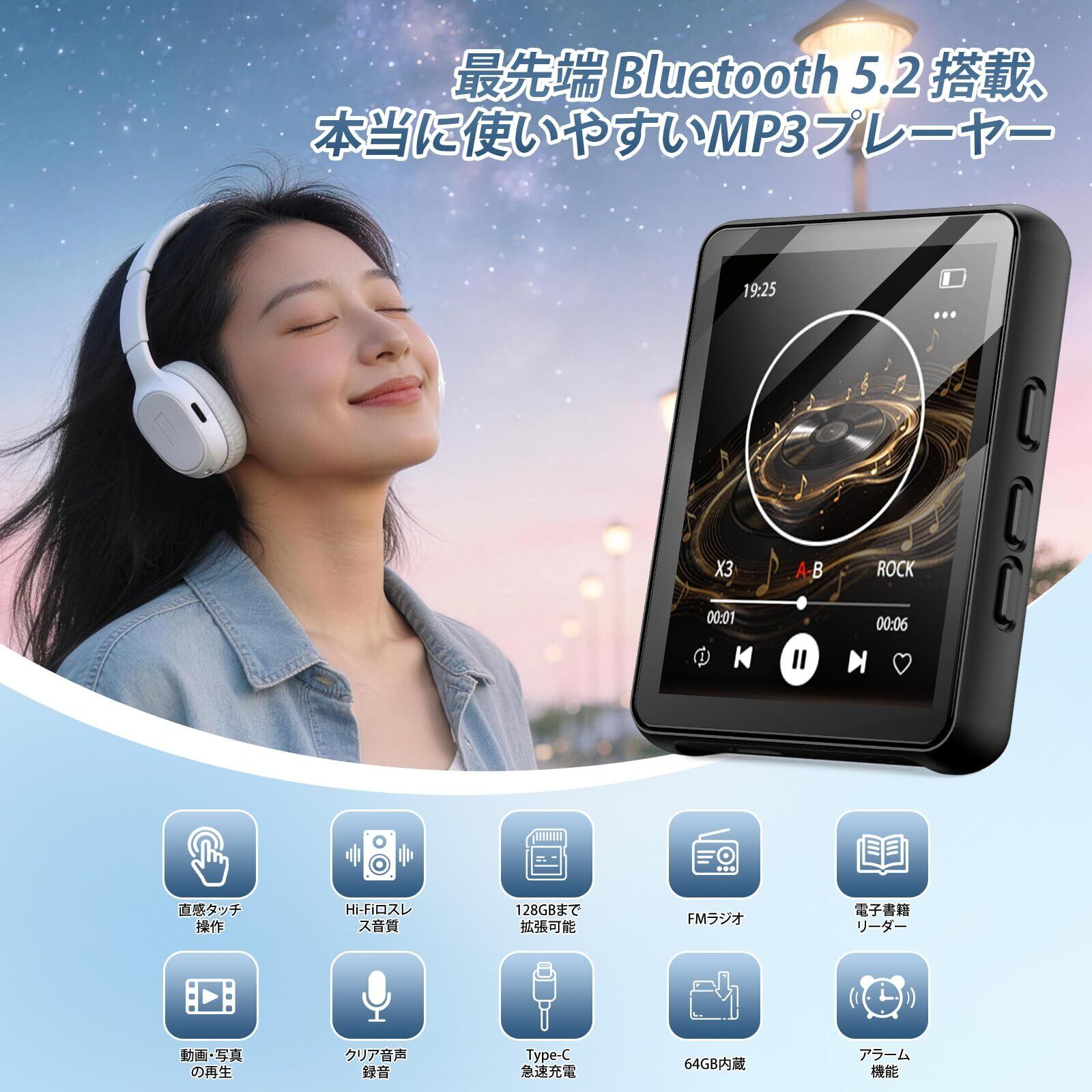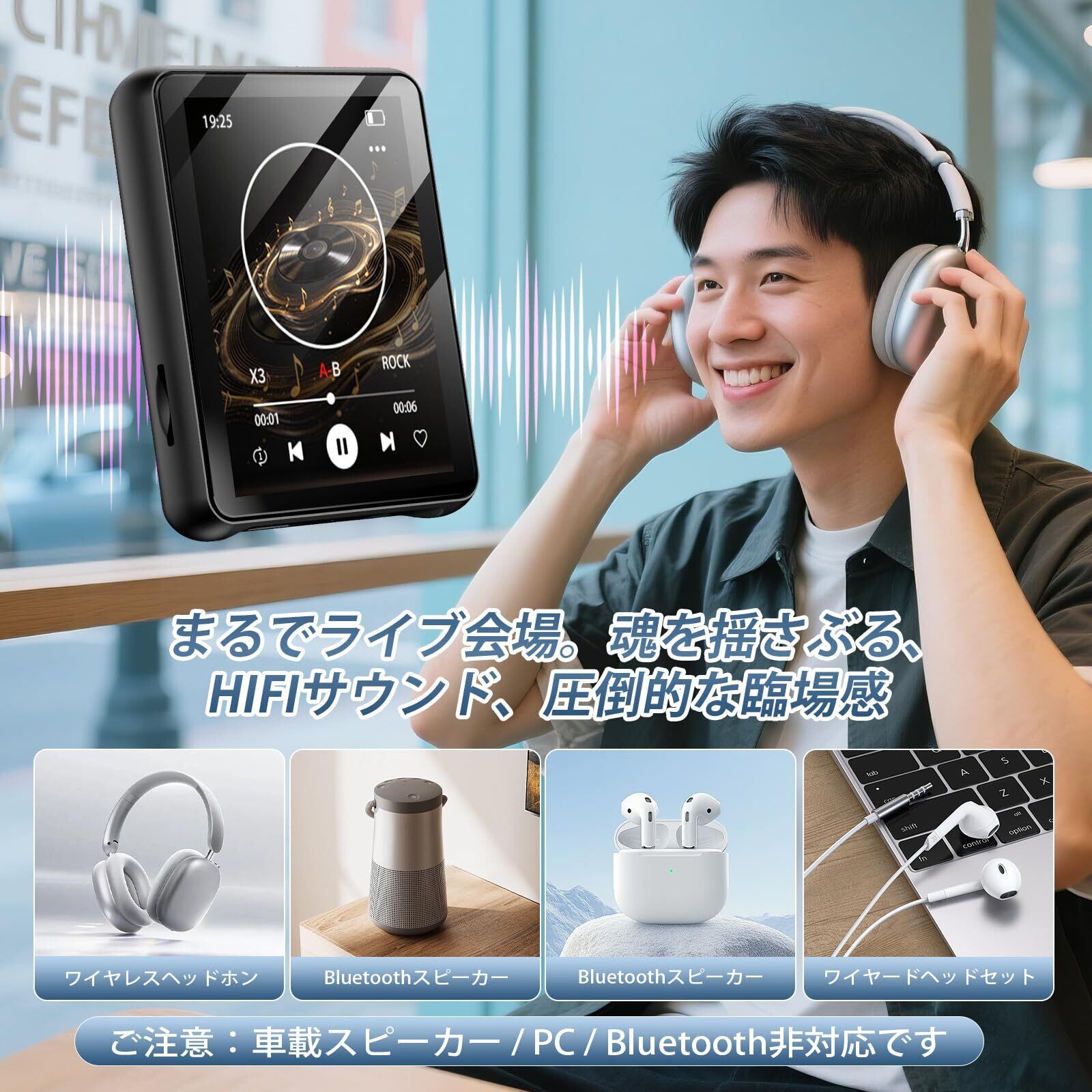 MP3プレーヤー Bluetooth 5.3搭載 スピーカー内蔵 2.4インチ フルタッチパネル 音楽プレーヤー HIFI ポータブル デジタルオーディオプレーヤー FMラジオ 録音 辞書機能 電子書籍 A-Bリピート 日本語表示対応 最大128GBまで拡張可能 語学学習 通学 通勤 スポーツ 日本専用周波数対応