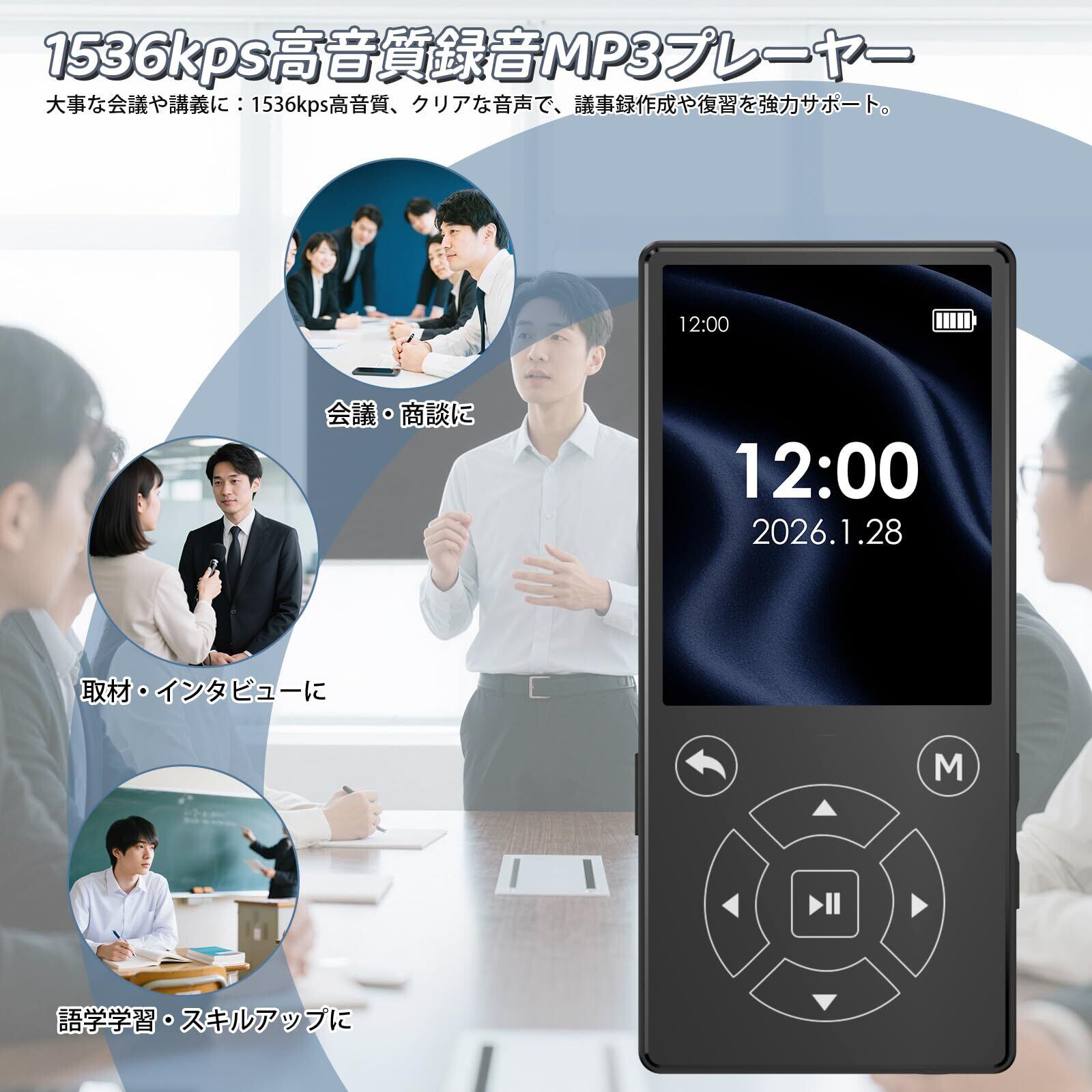 MP3プレーヤー Bluetooth5.3搭載 Bluetooth対応 HIFI 音楽プレーヤー 2.4インチ大画面 軽量 タッチボタン スピーカー内蔵 FMラジオ 録音対応 128GB拡張可能 デジタルオーディオプレーヤー 通勤 通学 語学学習