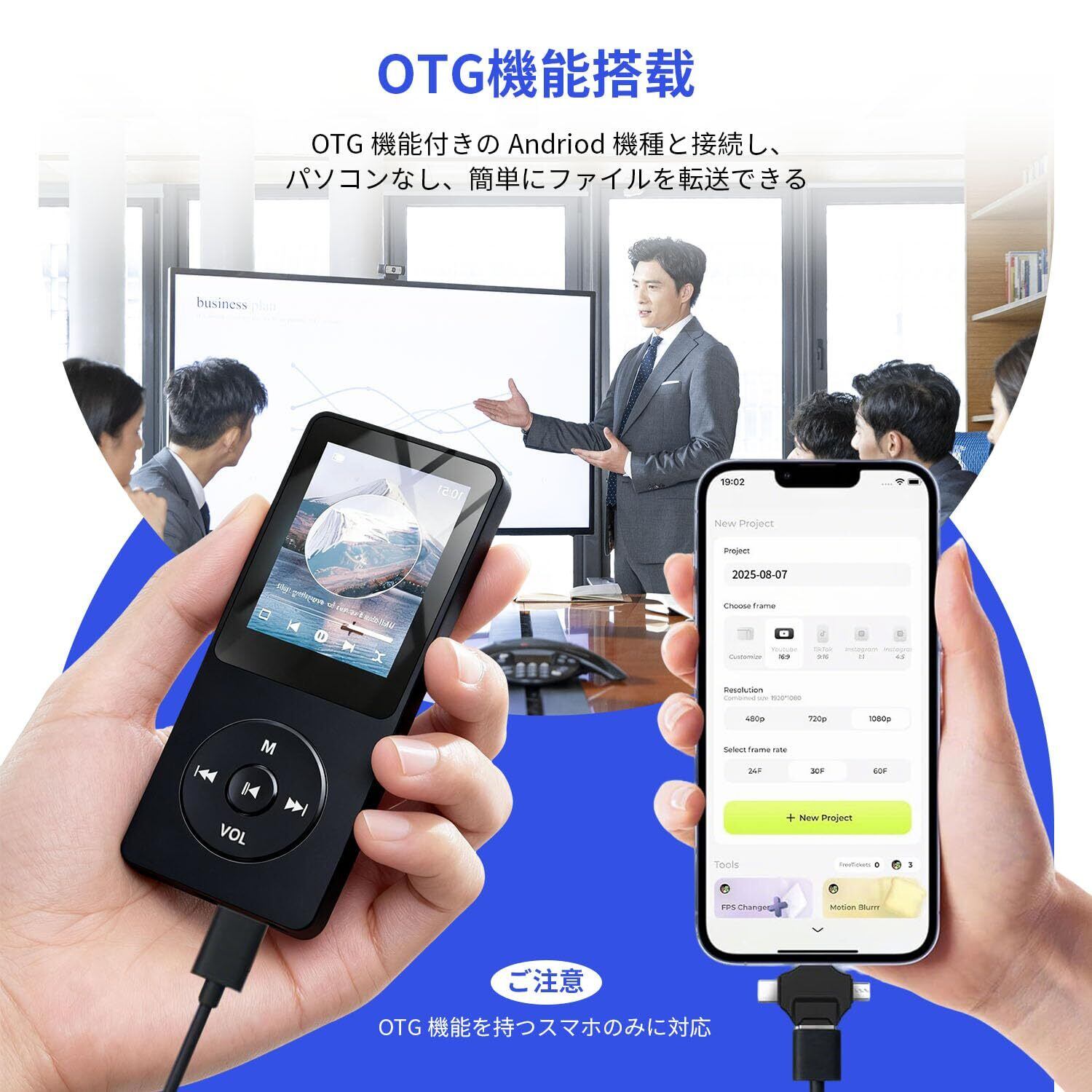 MP3プレイヤー 32GBのSDカード付き 音楽プレーヤー 128GB拡張可能小型ミュージックプレイヤー HIFI音質 大画面 HD画質 有線/無線 音量調節 使いやすい ロックボタン誤動作防止 多機能MP3プレーヤー 携帯音楽プレーヤー 録音/FMラジオ/電子ブック/アラームなど機能付き 通勤/スポーツ/語学学習/ギフト