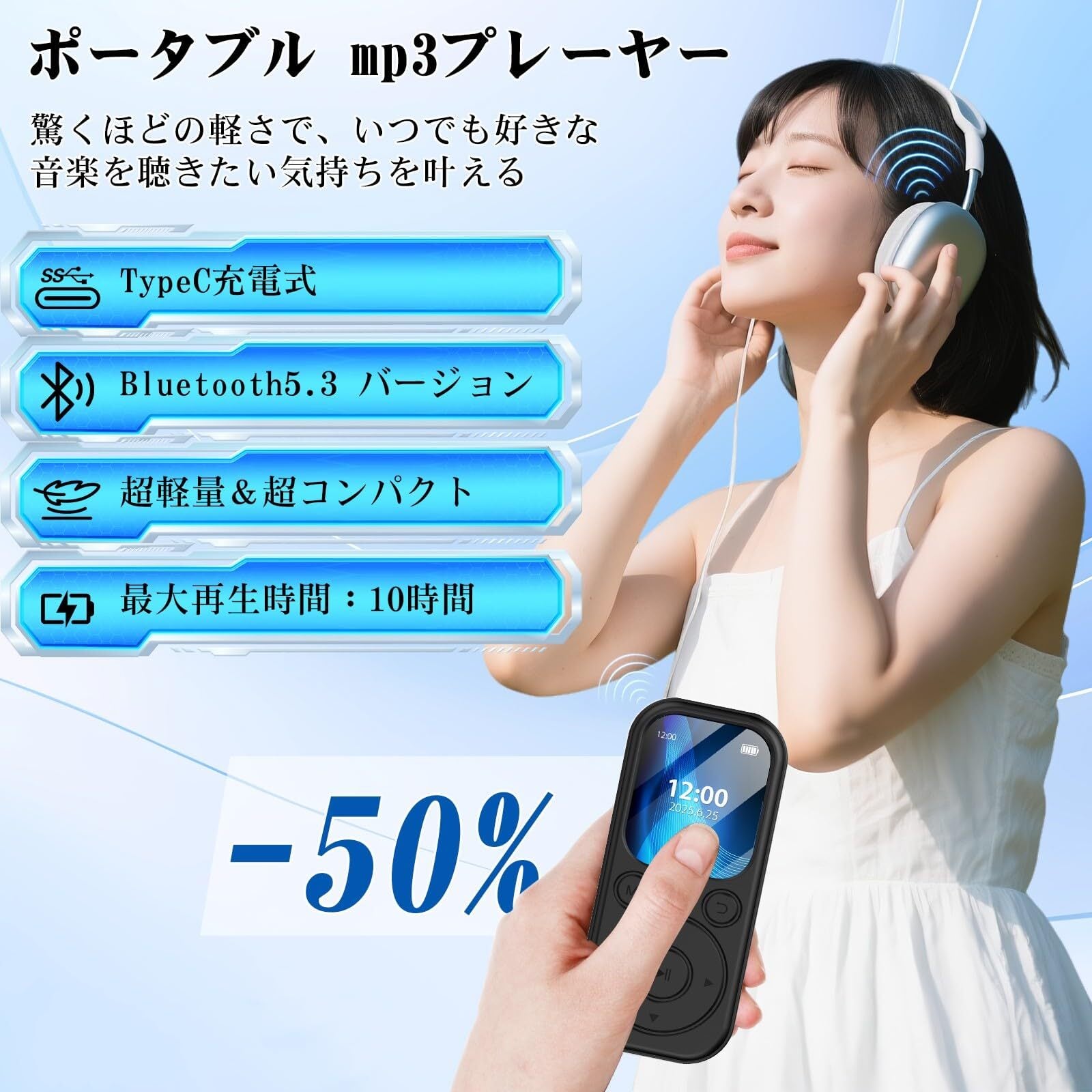 【TypeC式・64gb大容量SDカード付き】このポータブルMP3プレーヤーはTypeC式を採用して、従来の Micro-USB に比べて充電時間を大幅に短縮できますし、大量の音楽ファイルや電子書籍を一括で転送する際に時間を大幅に削減できます(TypeC充電ケーブルがセットにつき、デバイスをパソコンに接続してファイルを運送するには、セットに付属のケーブルを使用しなければなりませんです)製品の最大連続再生時間は10時間であり、充電時間は2時間です。ポータブルMP3プレーヤーセットには64GBのSDカードも付き、追加SDカードで最大128GBまで拡張できますので、容量不足を心配せず、いつでも好きなコンテンツを全て持ち歩け、高画質の音楽ファイルや大量の電子書籍、写真、オーディオブックを一括して格納できます。