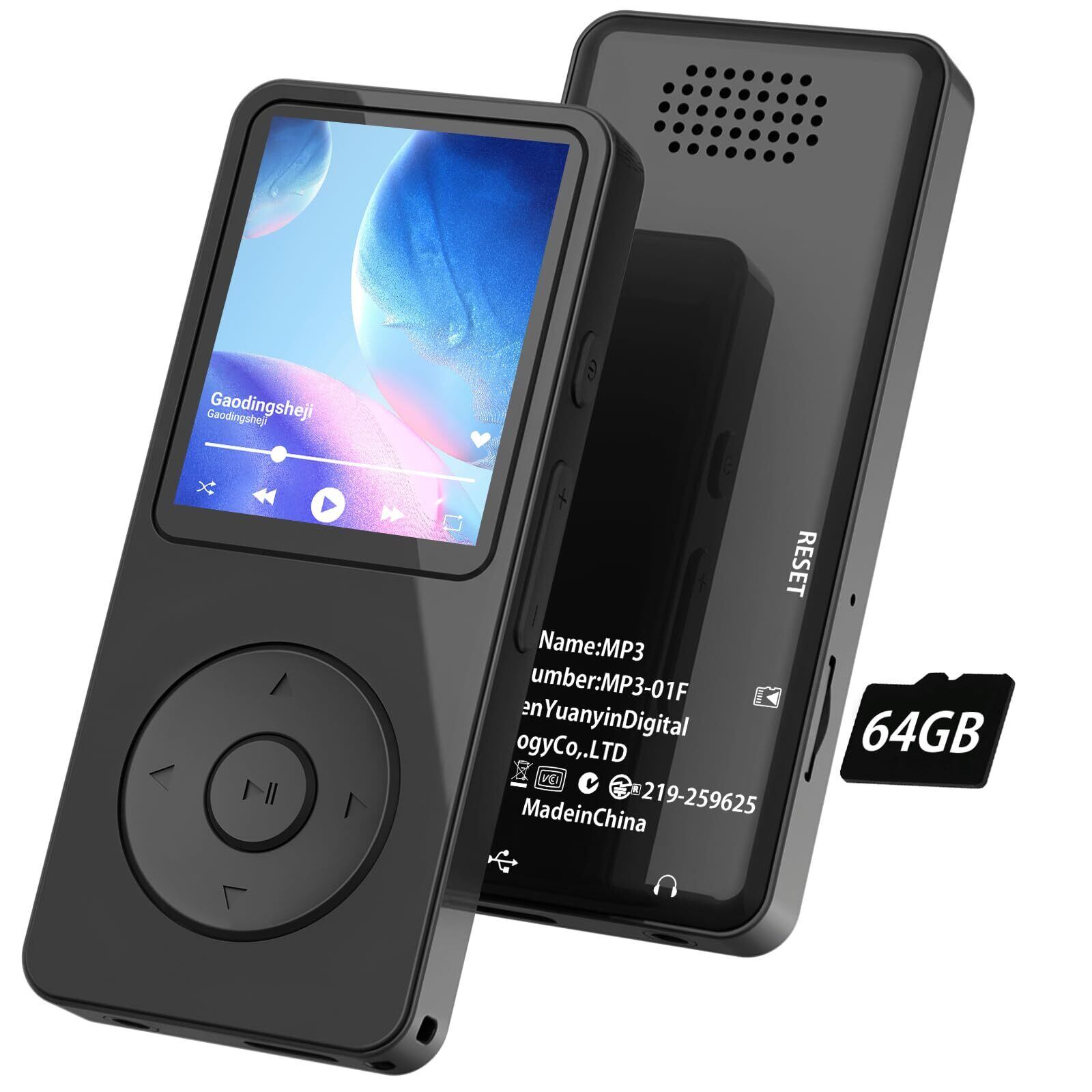Qoosea MP3プレーヤー Bluetooth 5.3対応 音楽プレーヤー スピーカー内蔵 ハイレゾ 再生 20時間超連続再生 64GBカード付き 128GB拡張 軽量コンパクト 学生/通学/ジョギング 日本語取扱説明書 GITEKI認証済み(Black, 64GB)