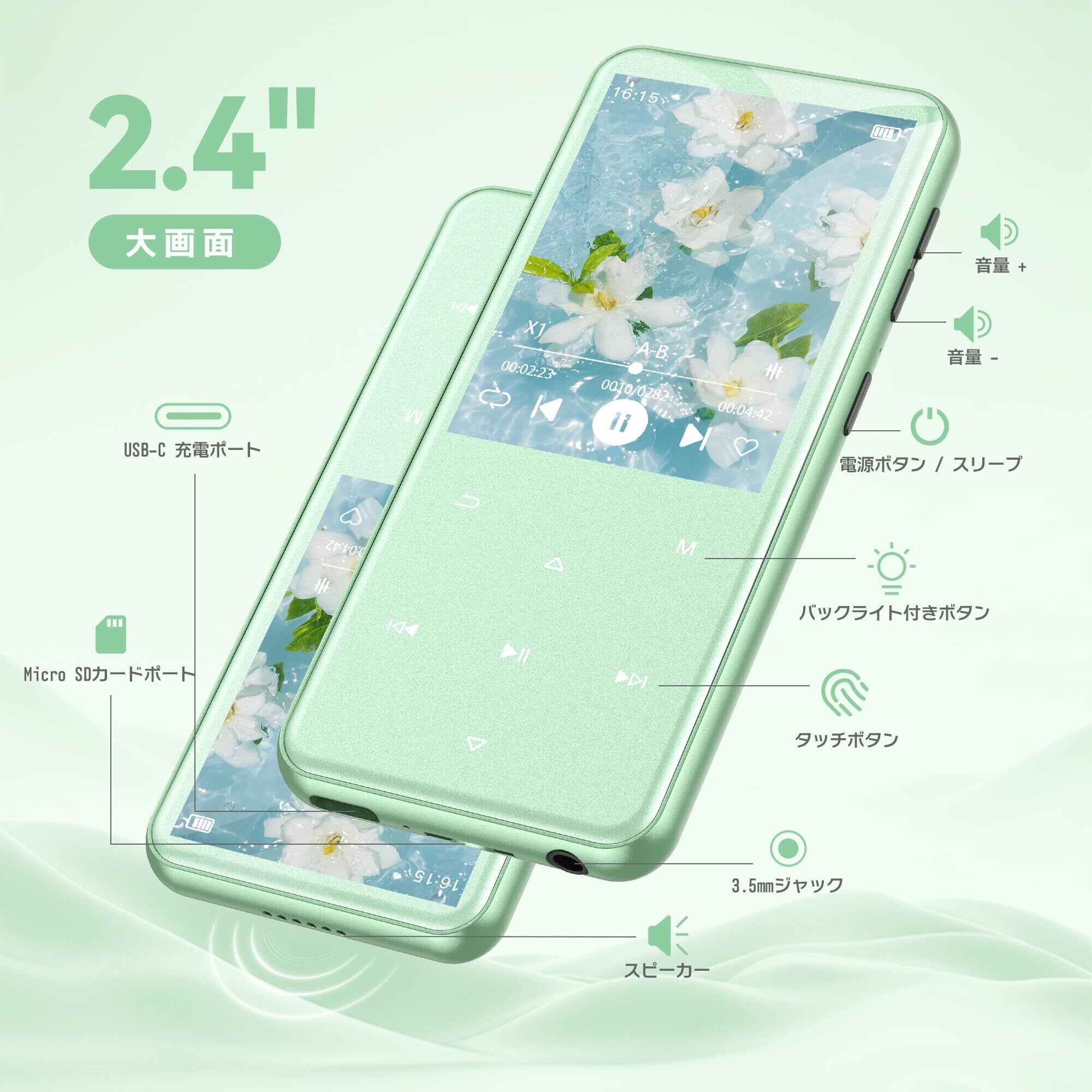 ✿【 2024年ストレージUP 64GB】 内蔵ストレージもA16は32GBになっているのに対して、音楽プレーヤー本体は64GBと容量が増やされており、より大容量のメモリが必要になる高品質のオーディオファイルに利用することを意識した設計になっています。本体は64GBメモリ内蔵しており、最大128GBまでのマイクロSDカードに対応しております。つまり、最大容量総計192GBになれて、ハイレゾファイルが約3000曲くらい保存することができます!