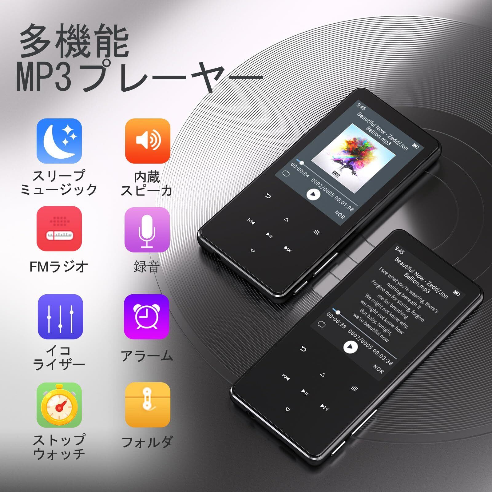 64GB MP3プレーヤー Bluetooth 5.3搭載 ワイヤレス ポータブル音楽プレーヤー 白色ノイズ対応 スピーカー内蔵 ロスレス音質 2.4インチ大画面 金属ボディ FMラジオ/録音/シャッフル再生/電子ブック/アラーム/ビデオ/写真 スポーツ・語学学習・通勤・プレゼント向け 128GB microSD対応