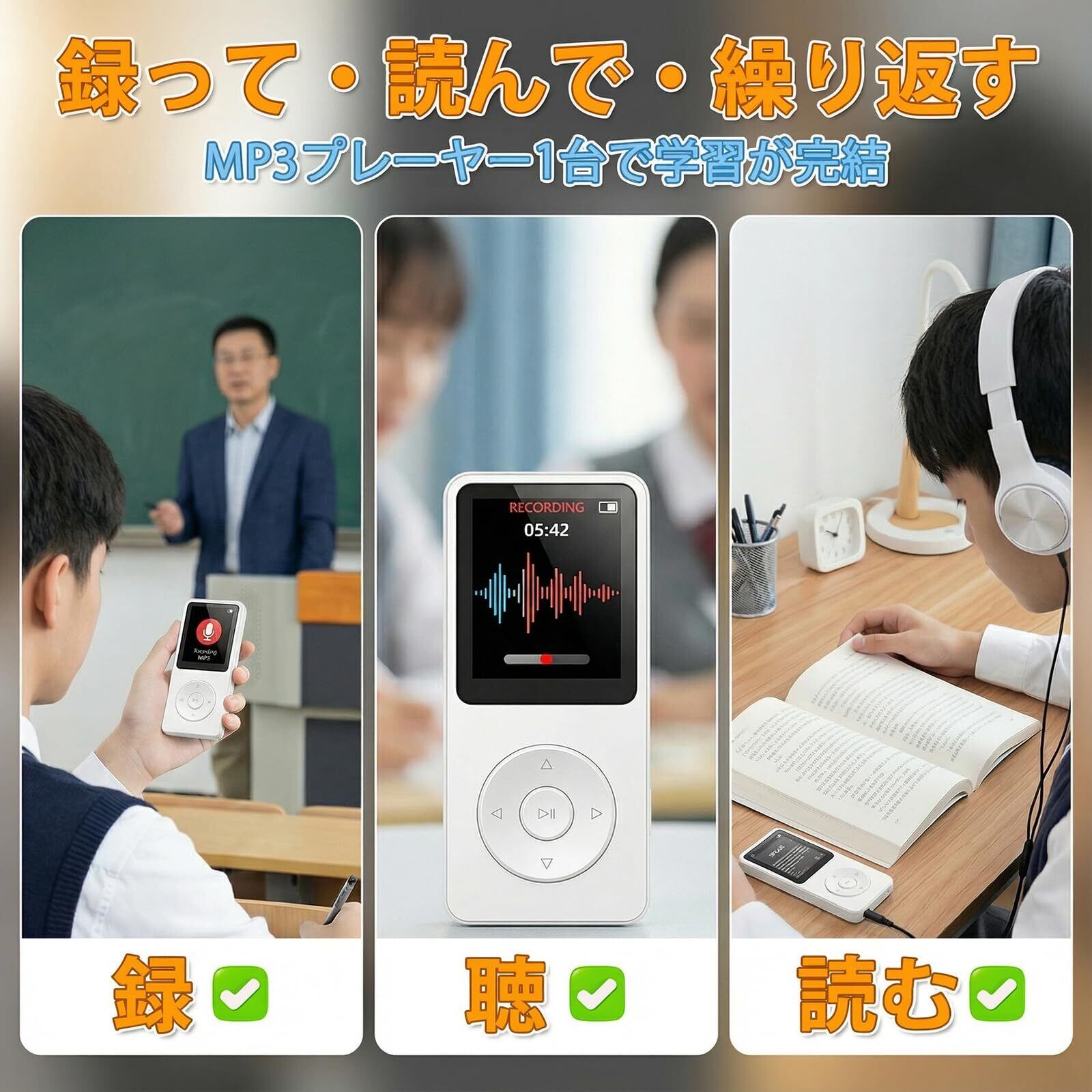 【日本帯域 FM ラジオ &録音機能— 多機能で日常生活に応え】76.00-90.00MHz 日本帯域 FM ラジオに対応,自動選局機能で 30 局までプリセット可能。また録音機能で会議録音・語学学習・ラジオ番組録画に対応,高品質 WAV 形式で重要音声を確実に保存できます