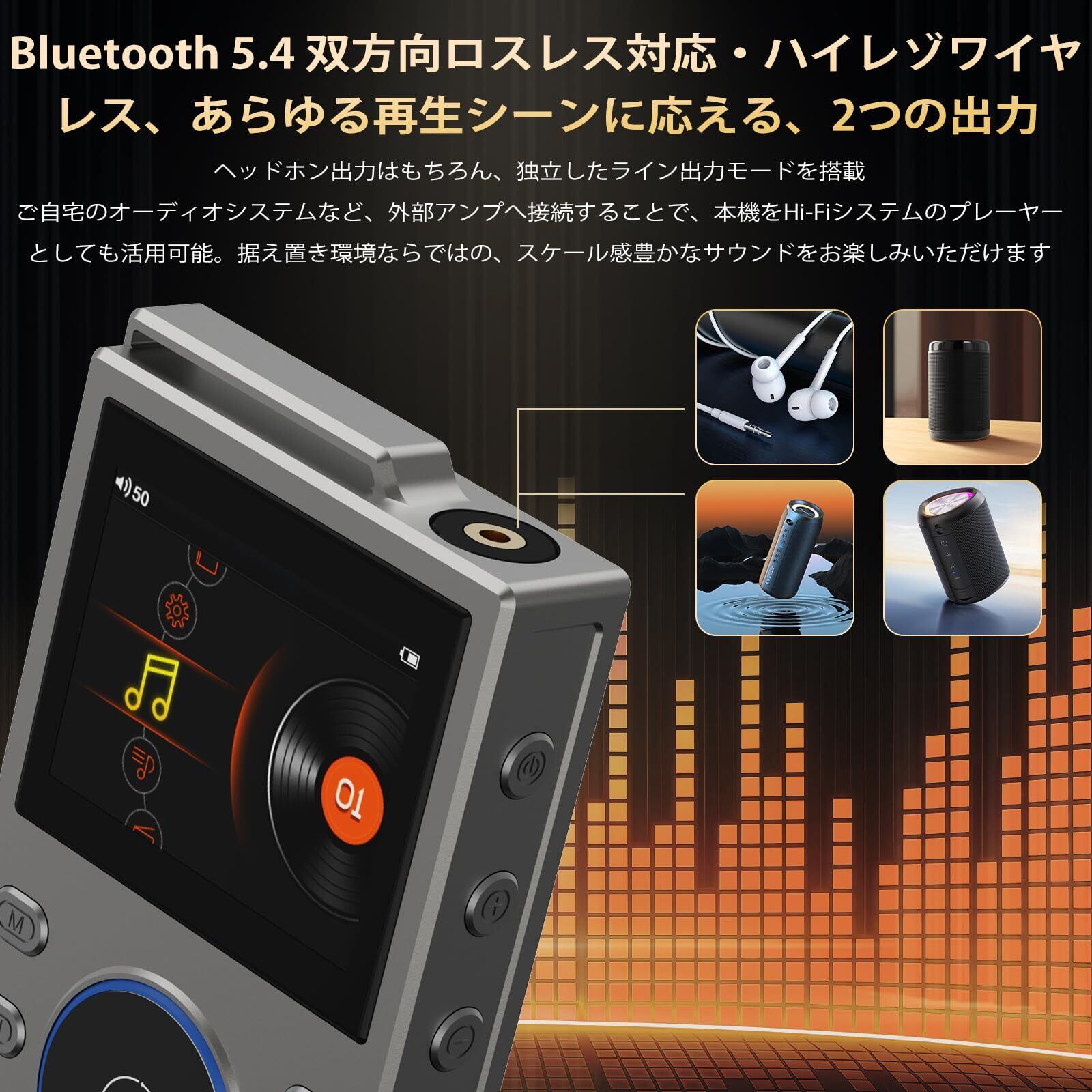 【ワイヤレスの自由と途切れない安定感!Bluetooth 5.4搭載】最新のBluetooth 5.4対応で、満員電車の中でも、お気に入りのワイヤレスイヤホンやスピーカーに瞬時に接続します。さらに、スマホのバッテリーを気にすることなく、安定した接続で音楽プレーヤーとしての役割を最大限に発揮します。もちろん、音質を極めたい時は有線接続も可能。ワイヤレスの手軽さと、有線の高音質を両立させた、まさに理想のデジタルオーディオプレーヤーです。デジタルオーディオプレーヤー