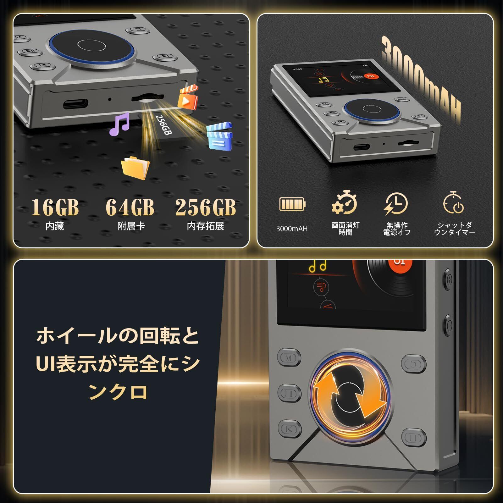 【箱出しで即使える大容量】このHiFiMP3プレイヤーは内蔵16GBメモリに加え、64GBのTFカードを無料でプレゼント。合計80GBの大容量で、高音質なハイレゾ音源も容量を気にすることなく数千曲保存できます。さらに最大256gb対応のTFカードスロットで拡張も可能。お気に入りの曲すべてを、この携帯プレーヤーに入れて持ち運びましょう!