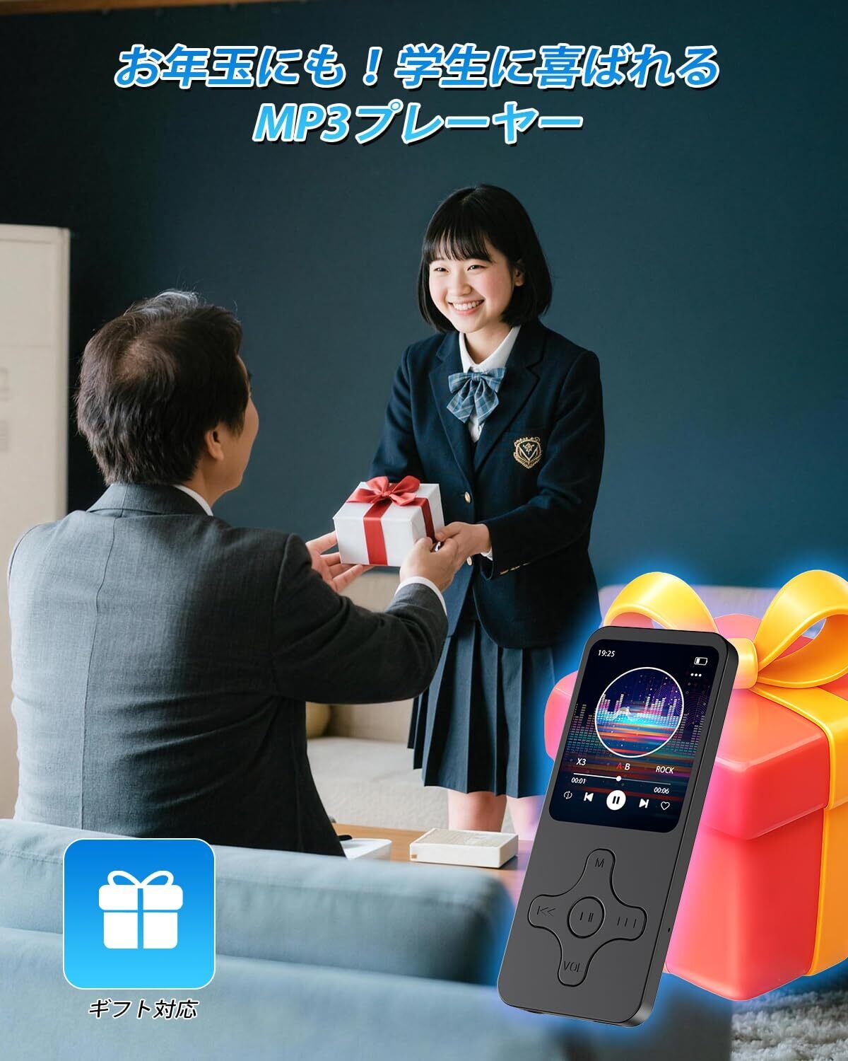 「お年玉・クリスマスプレゼント・入学祝いなど、贈り物にもぴったり&64GB大容量microSDカード、128GBまで拡張可能」このポータブルオーディオプレーヤーは、あなたのデジタルライフをより豊かにする、驚異的な大容量ストレージを標準装備しています!まず、内蔵されている64GB()の大容量microSDカードは、あなたの膨大な音楽コレクションを余すことなく収容。さらに、あなたの大切な旅行の思い出の写真、気に入った動画、最新の電子書籍など、様々なデジタルコンテンツを存分に保管できる余裕のある容量です。もう「この曲入れたいけど、容量が足りない…」という心配から解放されます!そして、これだけではなく、microSDカードスロットを搭載しているため、最大128GBまでの大容量カードを簡単に追加可能です!音楽愛好家であれば、さらに多くのプレイリストを、電子書籍好きであれば、数百冊の本を、そのまま持ち運ぶことができます。将来的にコンテンツが増えても、心配いりません。この「標準64GB+最大128GB拡張可能」の組み合わせは、あなたの今のニーズに応え、将来的な増え続けるコンテンツにも対応する、将来的なストレージ不足リスクを大幅に低減します。一度購入すれば、長く安心して使える、コストパフォーマンスの高い設計です。音楽、動画、写真、電子書籍…あなたの大切な全てのデジタルコンテンツを、いつでもどこでも気兼ねなく楽しめる、まさに「必需品」です。