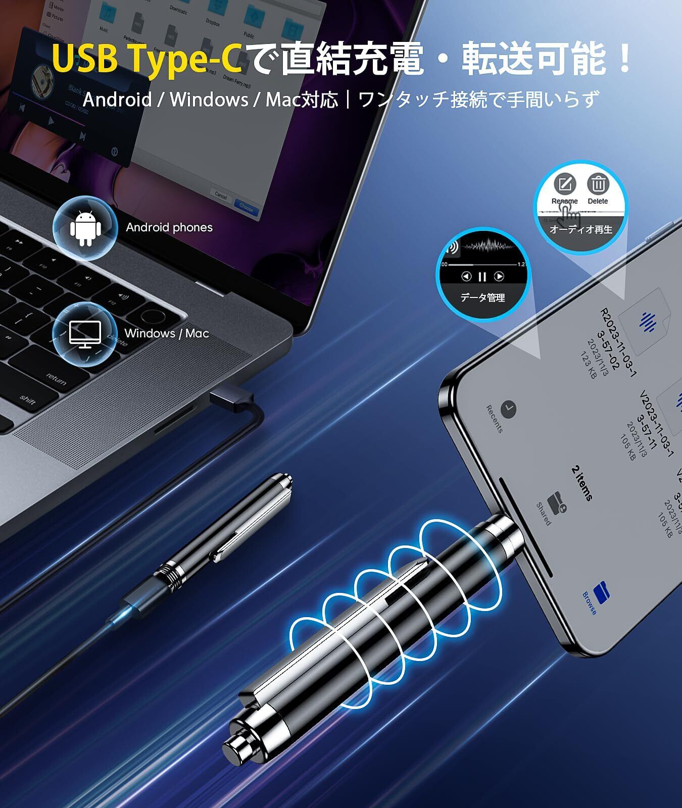 ボイスレコーダー 録音機 内蔵Type-CポートでスマートフォンとOTG接続可能な双方向転送対応 ICレコーダー 会議 授業 インタビューシーンでの連続分割録音とミュージックプレイヤー mp3プレーヤー 音楽プレイヤー機能を兼備 高感度 多機能 簡単操作 大容量バッテリーで Android/iOS/Windows/Mac対応
