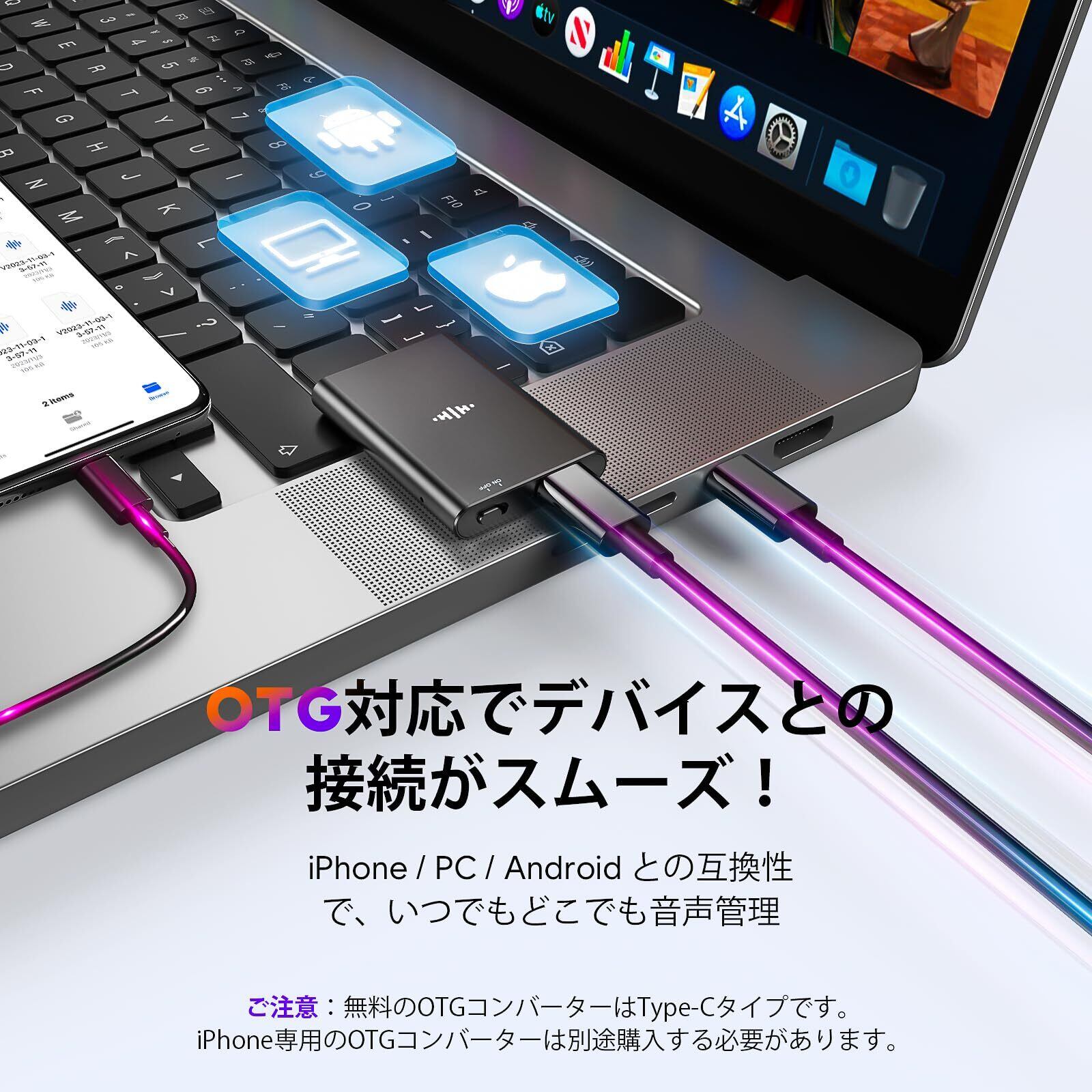【OTGダイレクト転送】ボイスレコーダーをOTGアダプターでスマートフォンに直接接続し、素早くファイル管理が可能。Androidはもちろん、Windows XP/7/8/10にも対応しており、その場で録音データのリネーム、共有、削除ができます。パソコンを用意する必要がなく、忙しいビジネスパーソン、学生、ジャーナリストに最適。時間や場所を選ばず、音声ファイルへ迅速かつストレスフリーにアクセスできます。