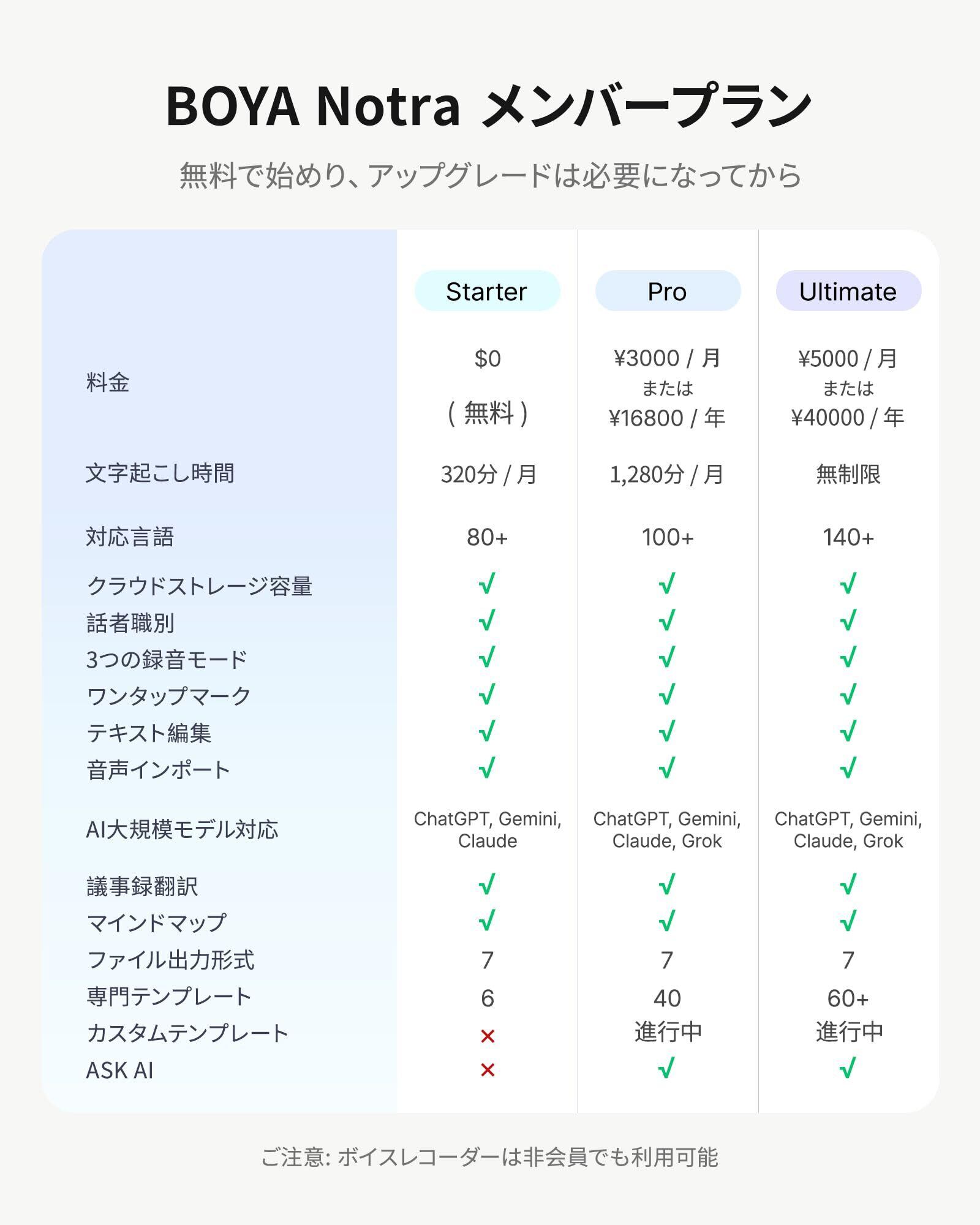 【BOYA Notraについて】BOYA Notraボイスレコーダーは、マルチAIモデルを搭載し、ワンタップであらゆる会議、通話、日常の会話などをシームレスに録音・文字起こし、要約などの実用的なデータを生成します。3つの録音モードをシームレスに切り替え、様々なシーンに対応でき、複数のアプリはもう不要で、これ1台ですべてが完結します。BOYA Notraは2年間の付きです。製品についてご不明な点がございましたら、お気軽にお問い合わせください。
