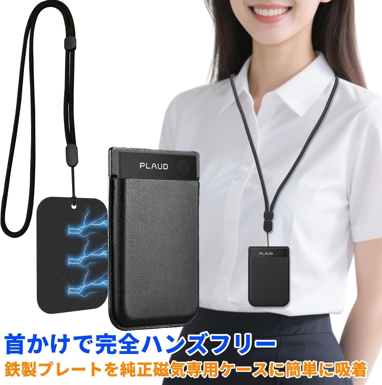 For Plaud Note AI/Pro AI/Notta Memo AI 専用 3WAYキャリーセット|磁気カバーに吸着する薄型プレートで首掛け/手提げ/クリップ留め|録音機を落とさない携帯ソリューション (ブラック, けストラップ+薄型鉄製プレート)