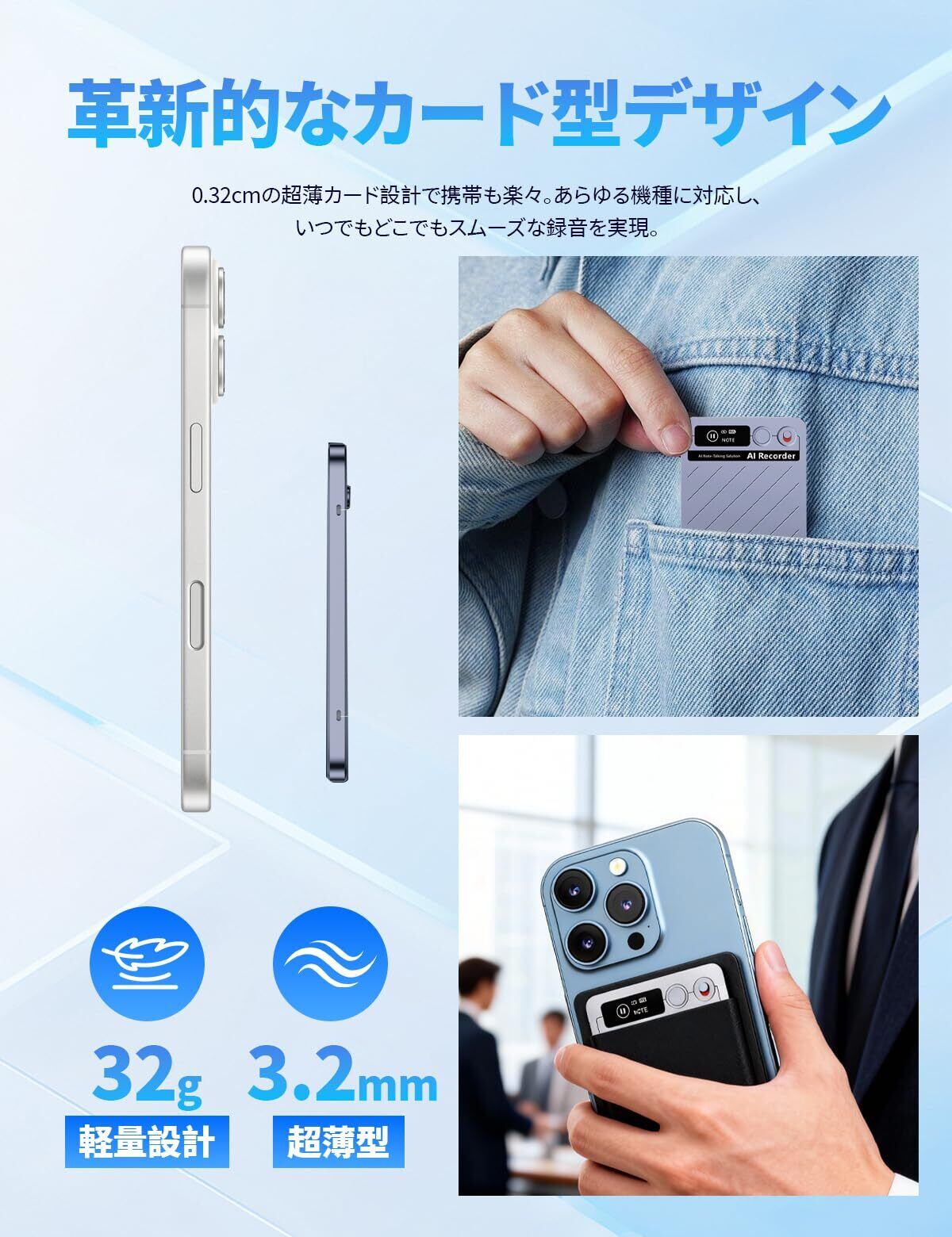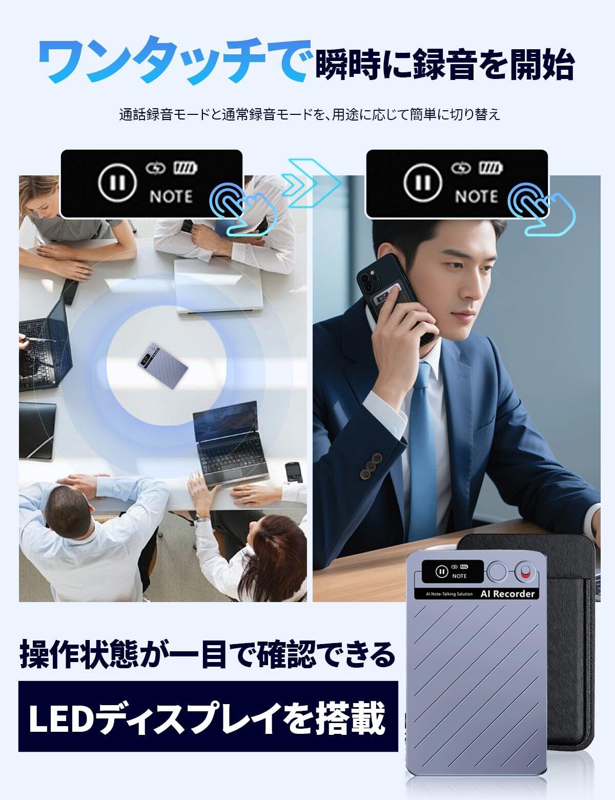 AI ボイスレコーダー ワンタッチ録音 文字起こし ICレコーダー 携帯/PCアプリ連動 通常録音/通話録音モード 極薄 64GB大容量 最大32時間連続録音 ワンタッチでハイライト 118ヶ国語対応 専門用語 AIに質問 議事録/ボイスメモ 専用ケース付属