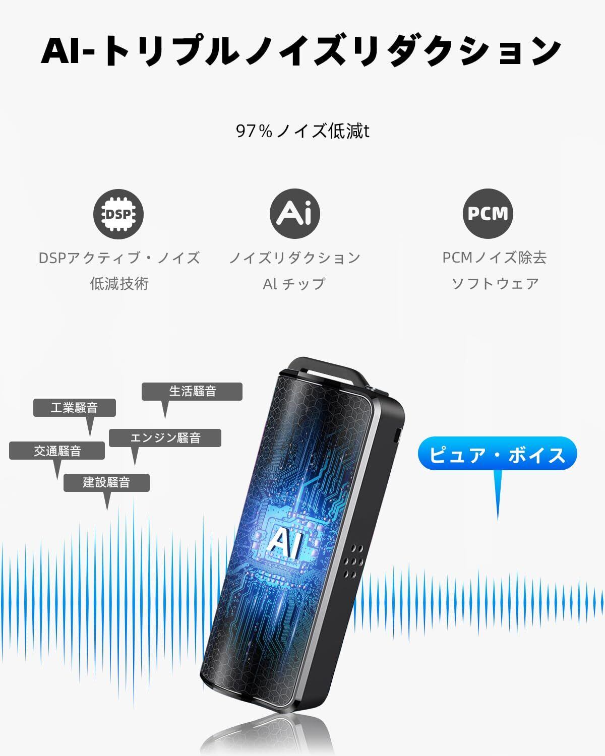 【AI- 知能的な三重ノイズ低減】このボイスレコーダーには、トリプルデジタルインテリジェントノイズリダクションテクノロジーとAIスマートチップが内蔵されており、周囲のノイズを90%自動的に低減します。ステレオマイクにより、遠くの音もクリアに捉え、HDステレオ録音を簡単に楽しむことができます。