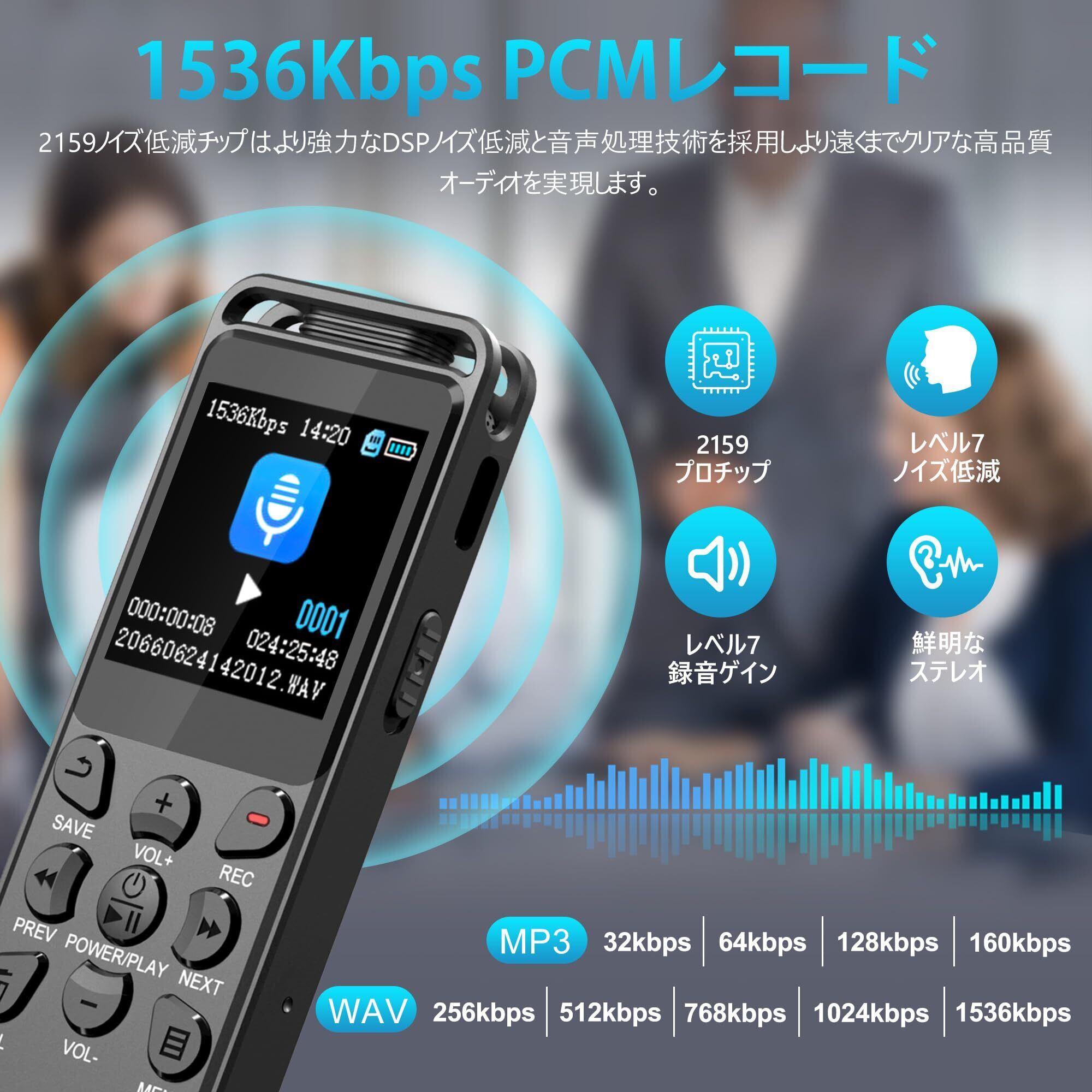 【1536kbps超高音質 & 専用外付けマイク付属】 最新の「2159ノイズキャンセルチップ」と高感度デュアルマイク、そして先進的なDSPノイズ除去技術を搭載。周囲の雑音を効果的にカットし、最大1536kbpsの圧倒的なクリアサウンドを実現しました。ジャーナリスト、教師、作家、ブロガー、学生など、プロ仕様の音質を求める方に最適です。さらに、コンパクトなクリップ式ピンマイク(ラベリアマイク)も標準付属。襟元に固定することで口元近くの音声を拾いつつ、本体操作音や衣類との摩擦によるノイズ(衣擦れ音)を大幅に軽減し、より鮮明な録音を可能にします。