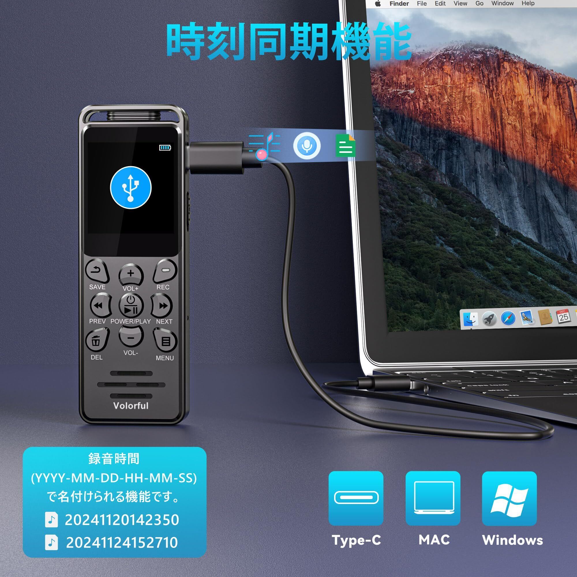 【VOR音声検知機能&パスワード保護】VOR録音モード搭載、電源を入れてから、音声を検出すると自動で録音を開始、無音時に一時停止。録音中が発生した無音部分が自動的にカットされるため、聞き直したときにスムーズに再生可能、メモリの容量も節約できます。また、パスワード保護機能が追加されるので、パスワードを持っている方しかアクセスできない、個人情報の保護を強化できます。※ご注意:製品出荷時のデフォルトは「0」off状態ですが、ご要望に応じてVORレベルをお選びください