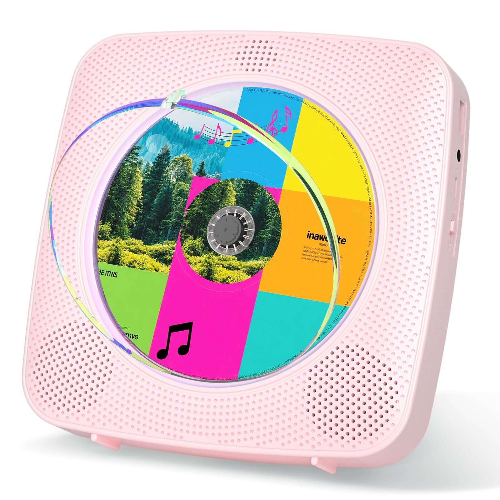 Gueray cdプレーヤー Bluetooth受信/送信 壁掛け可能 ステレオスピーカー内蔵 CDプレイヤー FMラジオ USB再生モード 操作簡単 リピート/A-Bリピート再生 mp3対応 イヤホン対応 CDラジカセ 防塵カバー搭載 リモコン付き 音楽再生/語学学習/胎児教育 日本語説明書付き 充電不可 ピンク Y-01