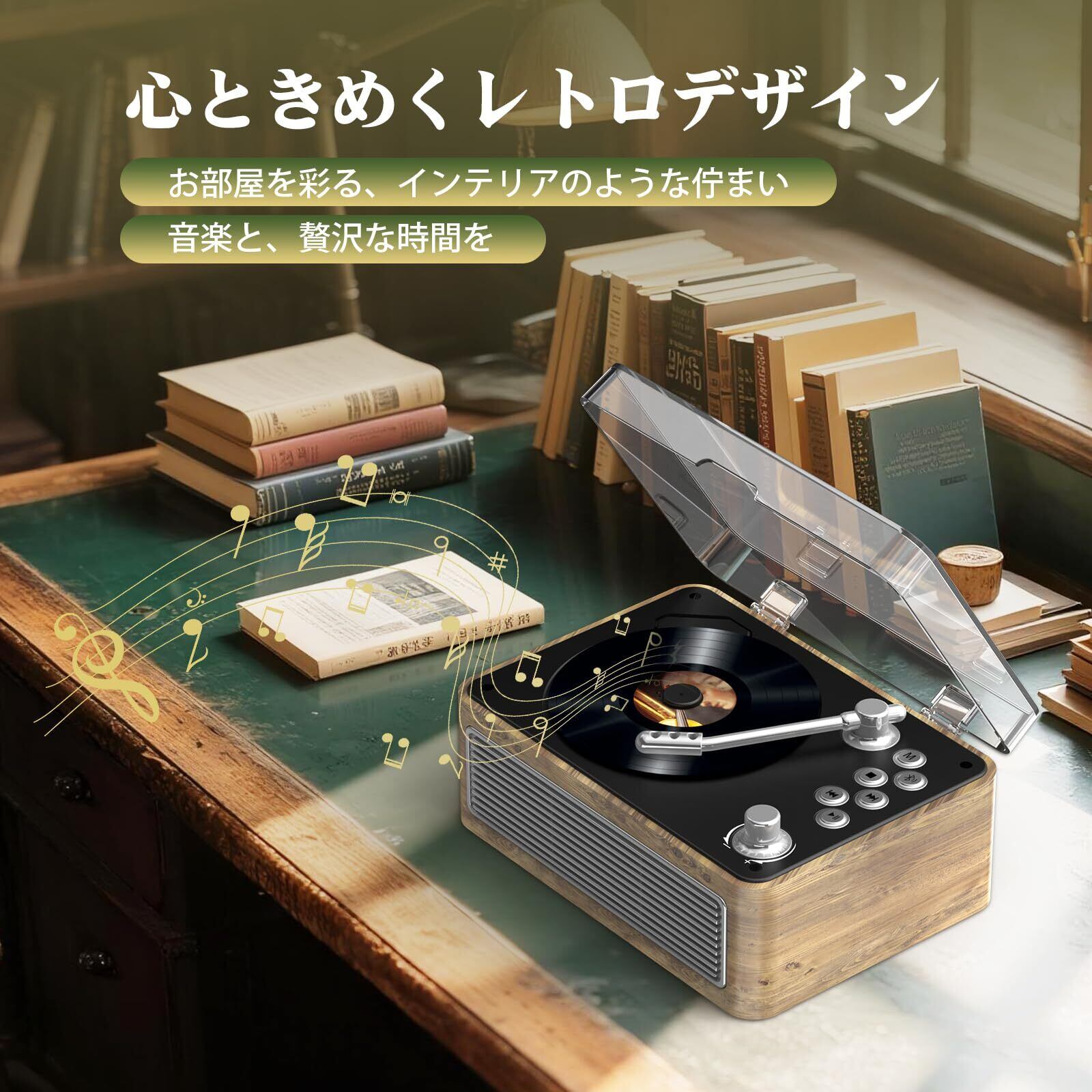 【心ときめくレトロデザイン、お部屋を彩るインテリアに】まるでレコードプレーヤーのような温かみのあるレトロなデザインが、あなたの空間を瞬時におしゃれな雰囲気に変えます。リビングや書斎、カフェや書店の卓上に置くだけで、ノスタルジックな音楽体験が始まります。音楽を愛する方への特別なプレゼントとしてもおすすめです。