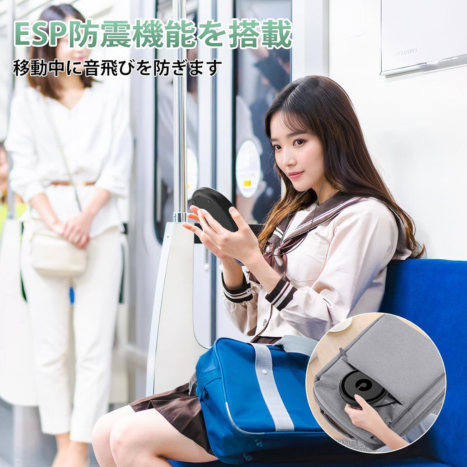 【操作簡単で高齢者向けのcdプレイヤー】ボタン式操作とLCDディスプレイだけのシンプルなデザインで、操作がとても簡単で、高齢者でも気軽に使用できます。また、手のひらのようなコンパクトのサイズと超軽量で、ポケットやバックに気軽に入れて、通学や散歩での携帯が超便利です。更に、ESP音飛び防止機能も搭載しており、移動中にCDの音が飛ぶことが防げます。