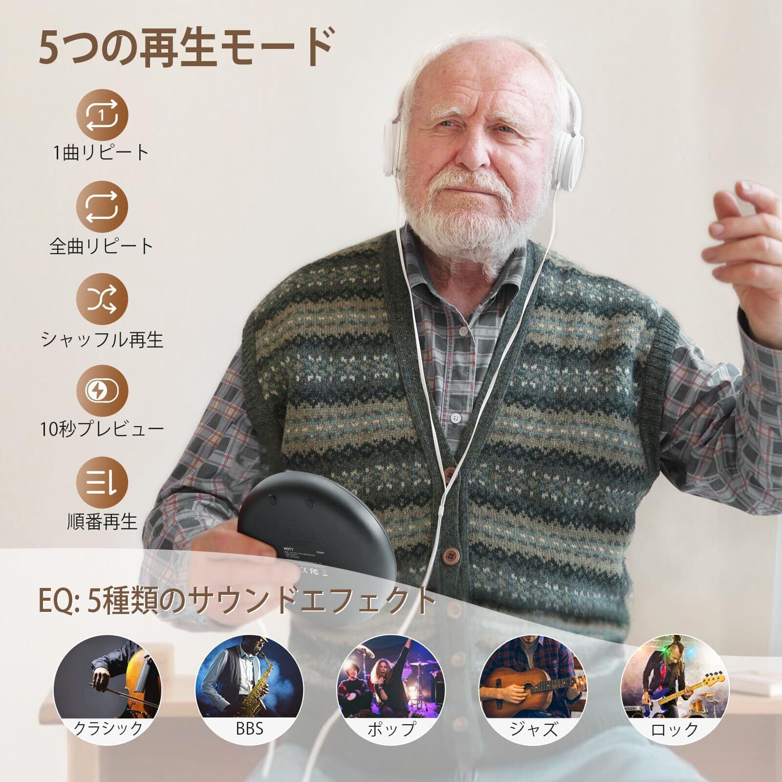 【精密な技術】20年以上オーディオプレイヤー制作経験を持つHOTTは、高品質・高忠実なポータブルCDプレーヤーの生産に専念する。先進的なSMTと製造プロセスはディスク識別の安定性を確保した。いつでもどこでも音楽をお楽しみいただけます。お洒落なギフト箱仕様でプレゼントにも最適な選択肢です。