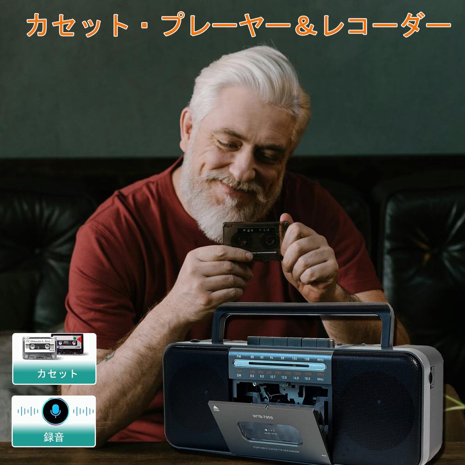 WTB-795S デュアルスピーカーとヘッドフォンジャックを備えたカセットテーププレーヤー、MP3デジタルコンバーターへのUSBカセット、テープへの録音、カセットテープレコーダー 日本語説明書付き (黑)