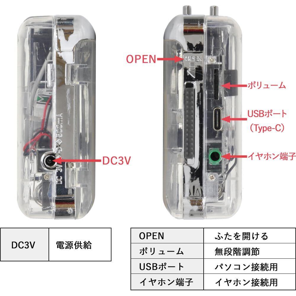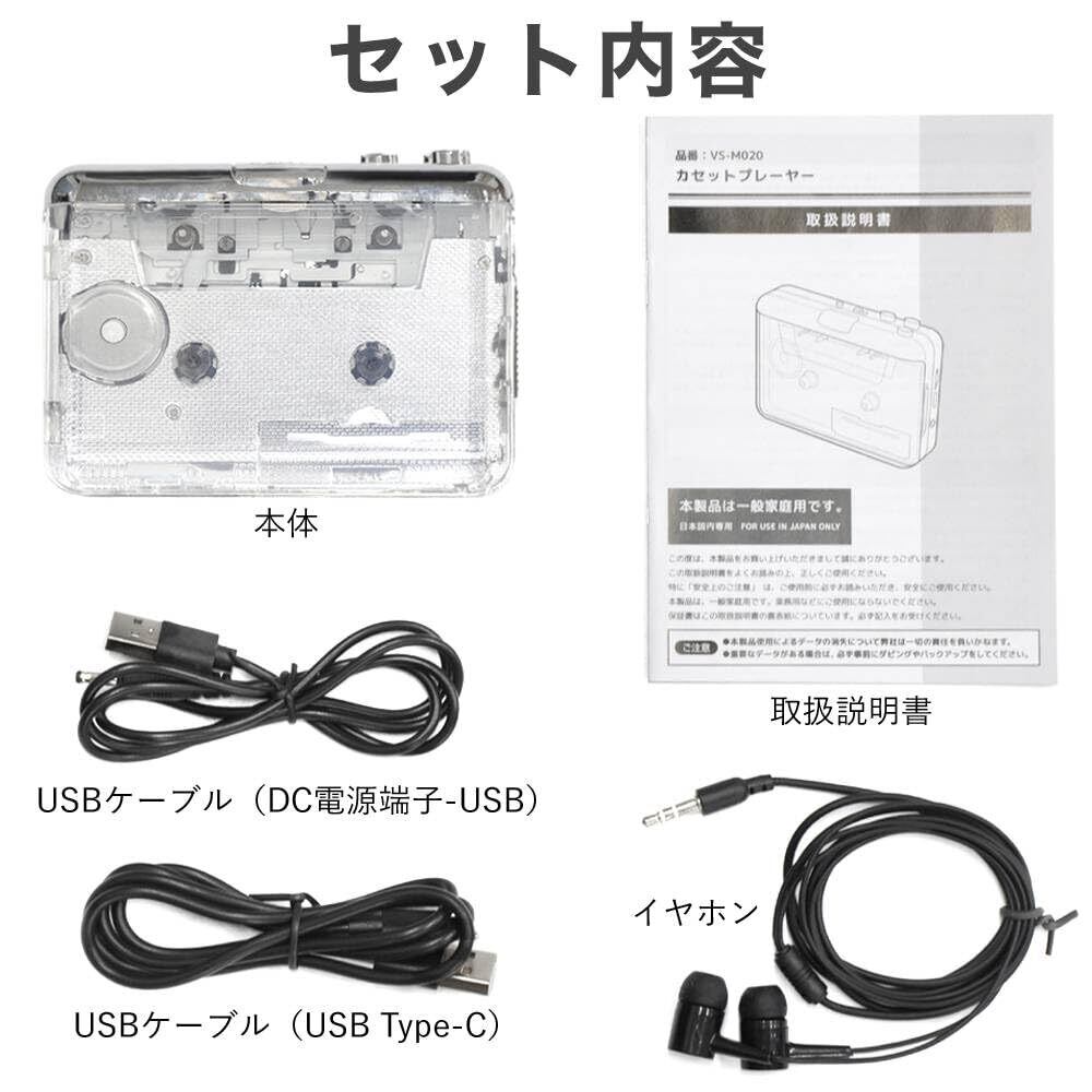 life_mart カセットプレーヤー ポータブル カセットテーププレーヤー コンパクト USB カセットプレイヤー カセット カセットテープ 再生 小型 薄型 透明 クリア おしゃれ