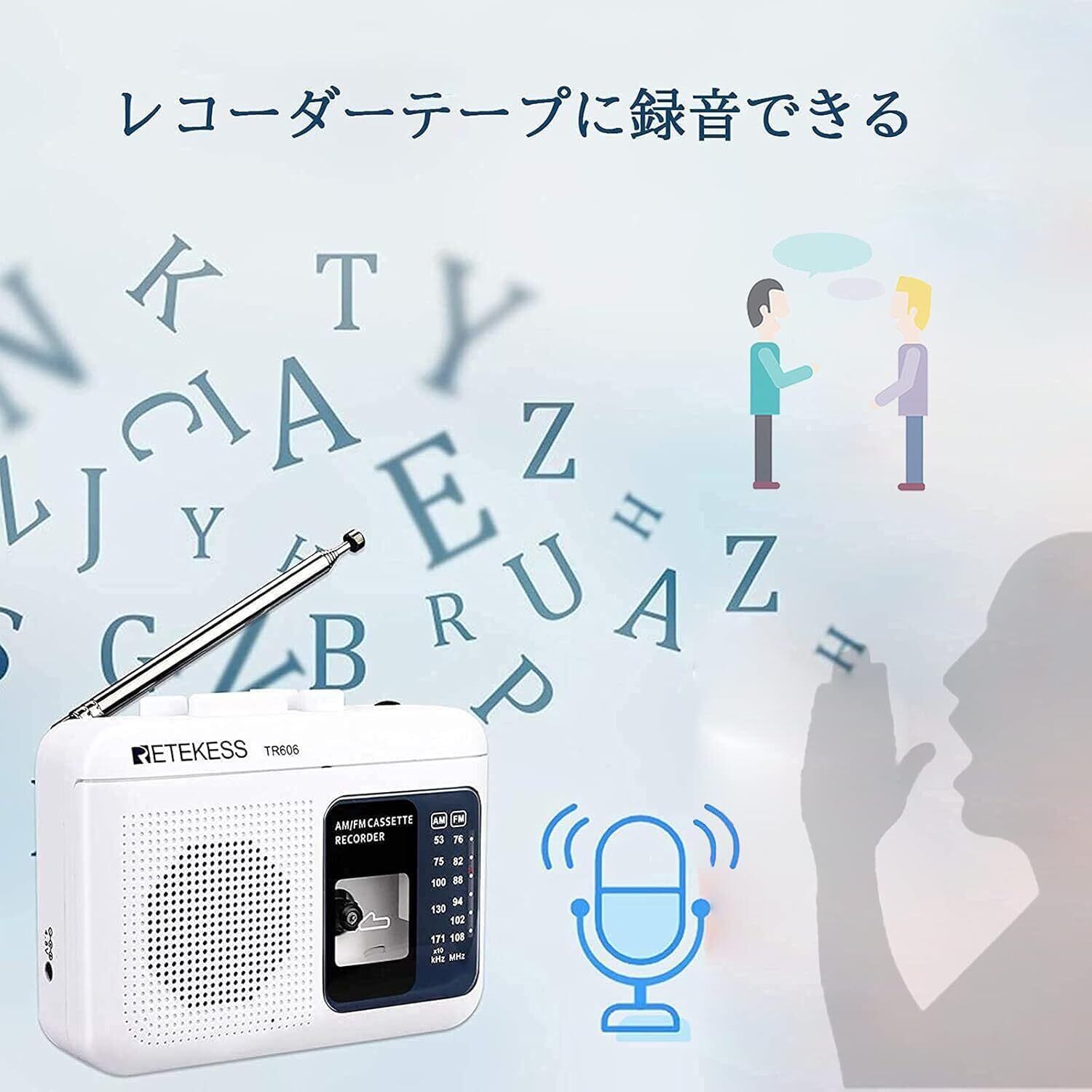 Retekess TR606 カセットプレーヤー ポータブルカセットテープ AM FMラジオ付き AC電源/乾電池 録音 MIC 高速再生 両親への贈り物 敬老の日 プレゼント ギフト