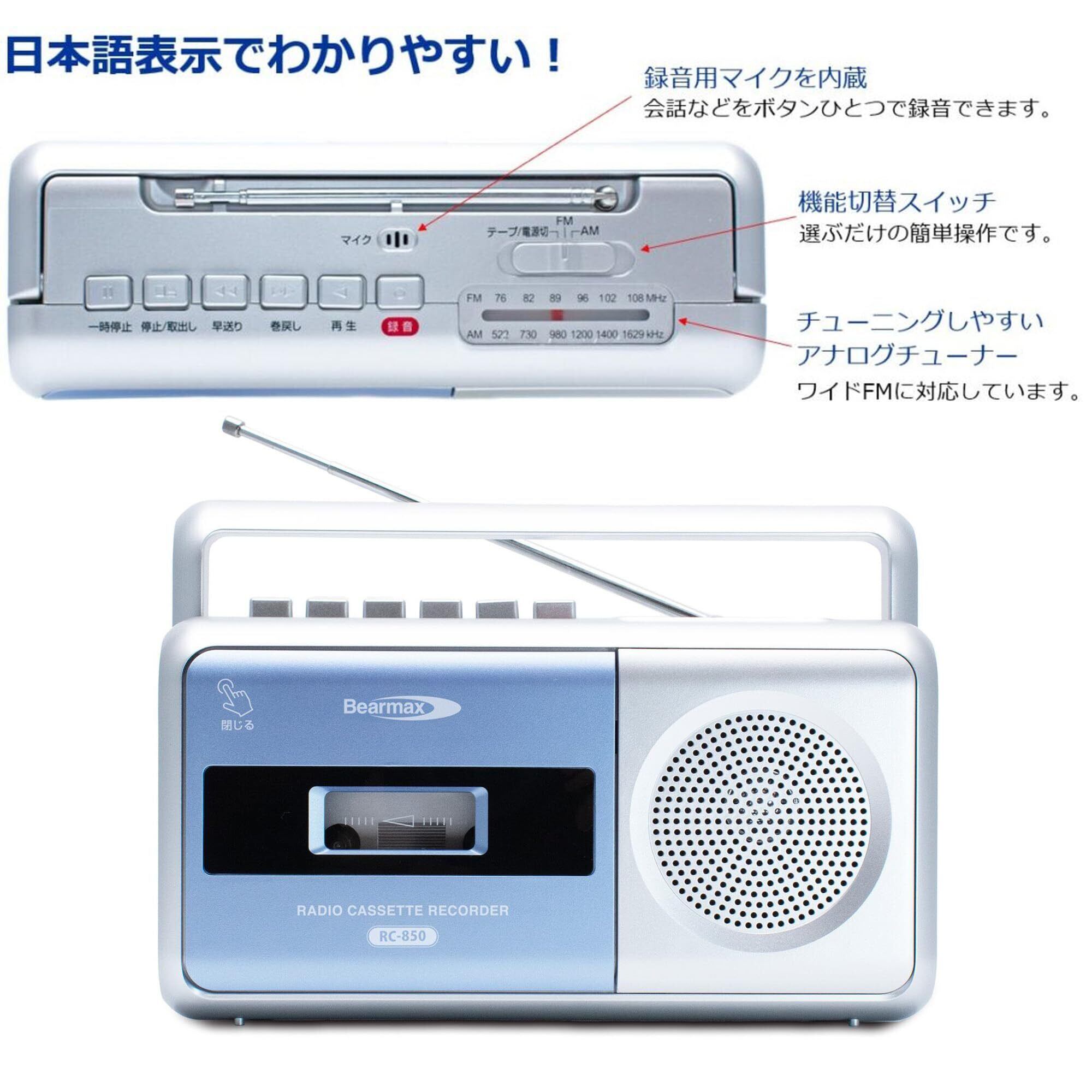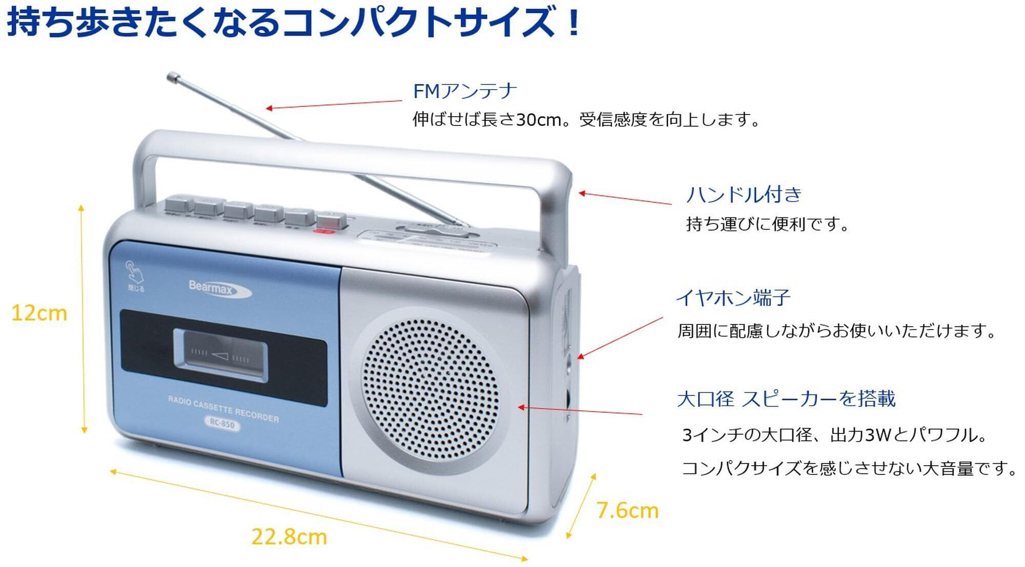 東京Deco ラジカセ FM/AM/ワイドFM対応 録音マイク内臓 カセットテープ再生/録音 ポータブルカセットプレーヤー AC100V/乾電池 コンパクト カセットテープ ポータブル コンセント km028